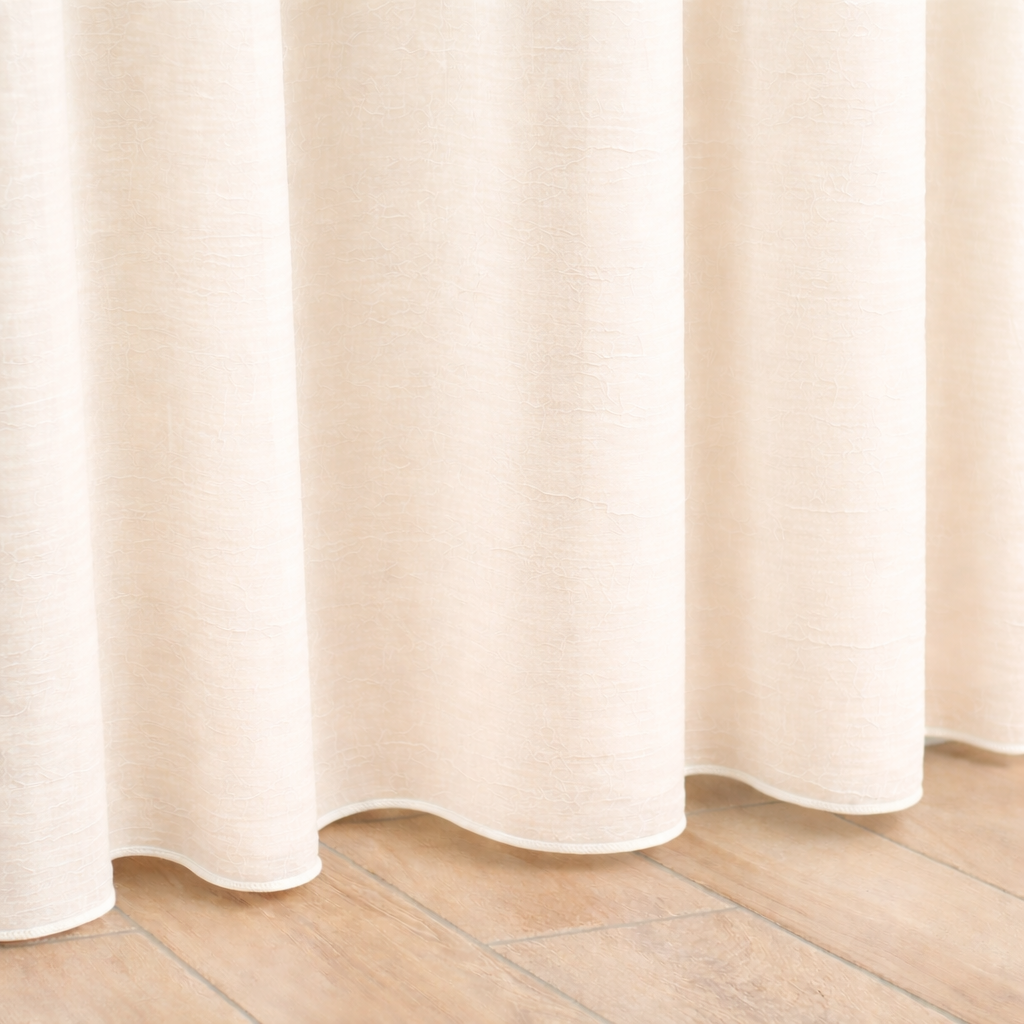 Posiada obszyte boki i u góry wszytą taśmę marszczącą nadającą się do wieszania na żabki lub haczyki.