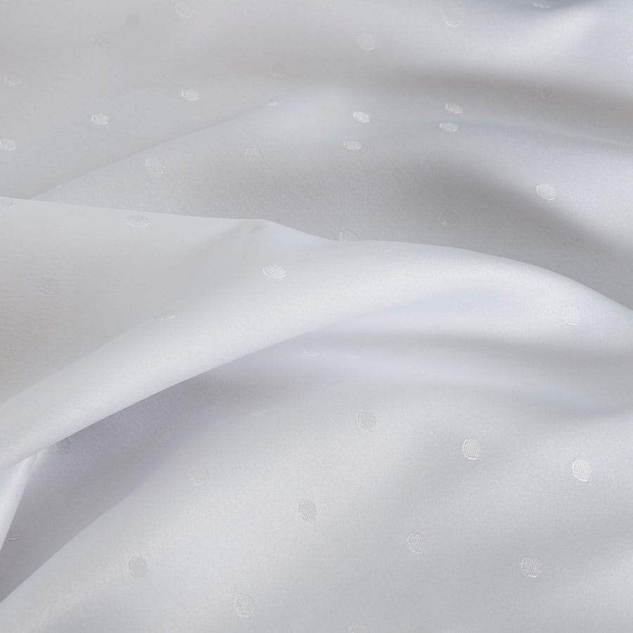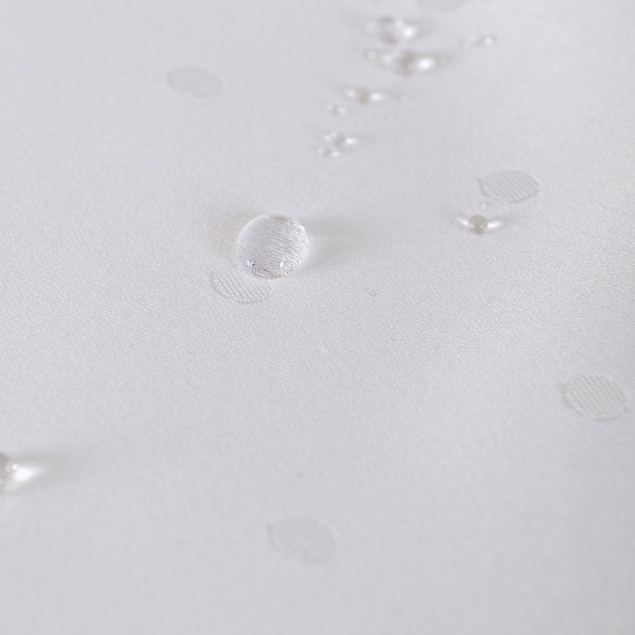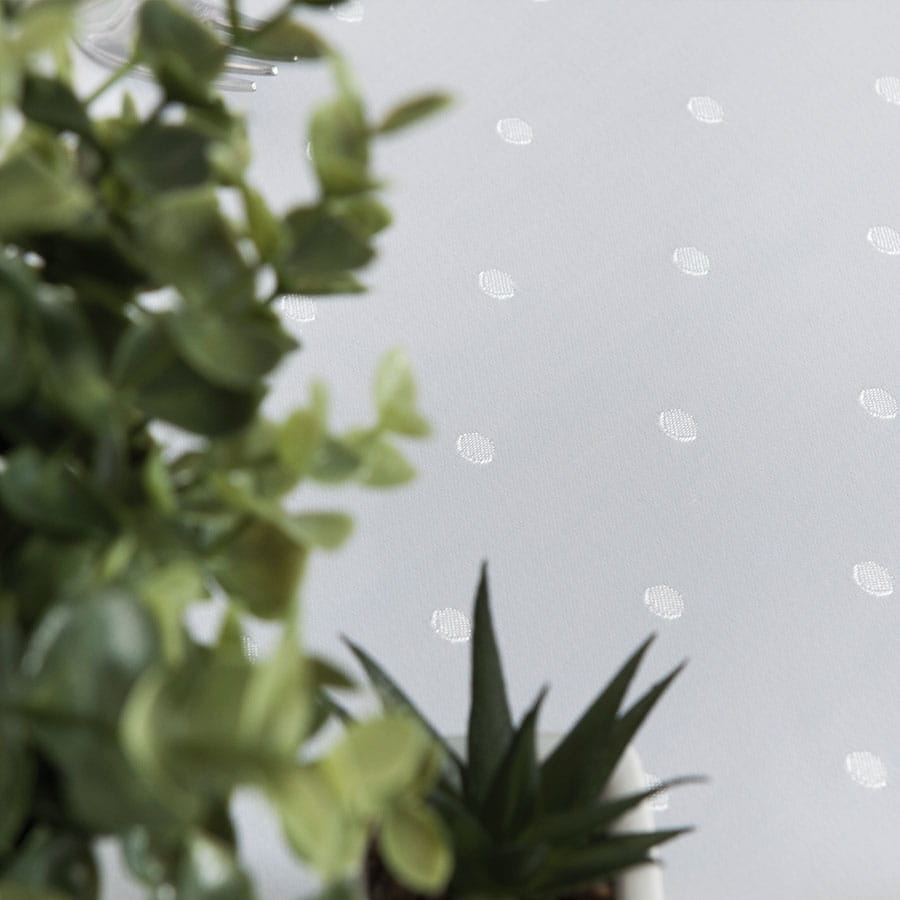 Tkanina wodoodporna z wzorem w regularne, duże grochy, które mienią się w świetle.