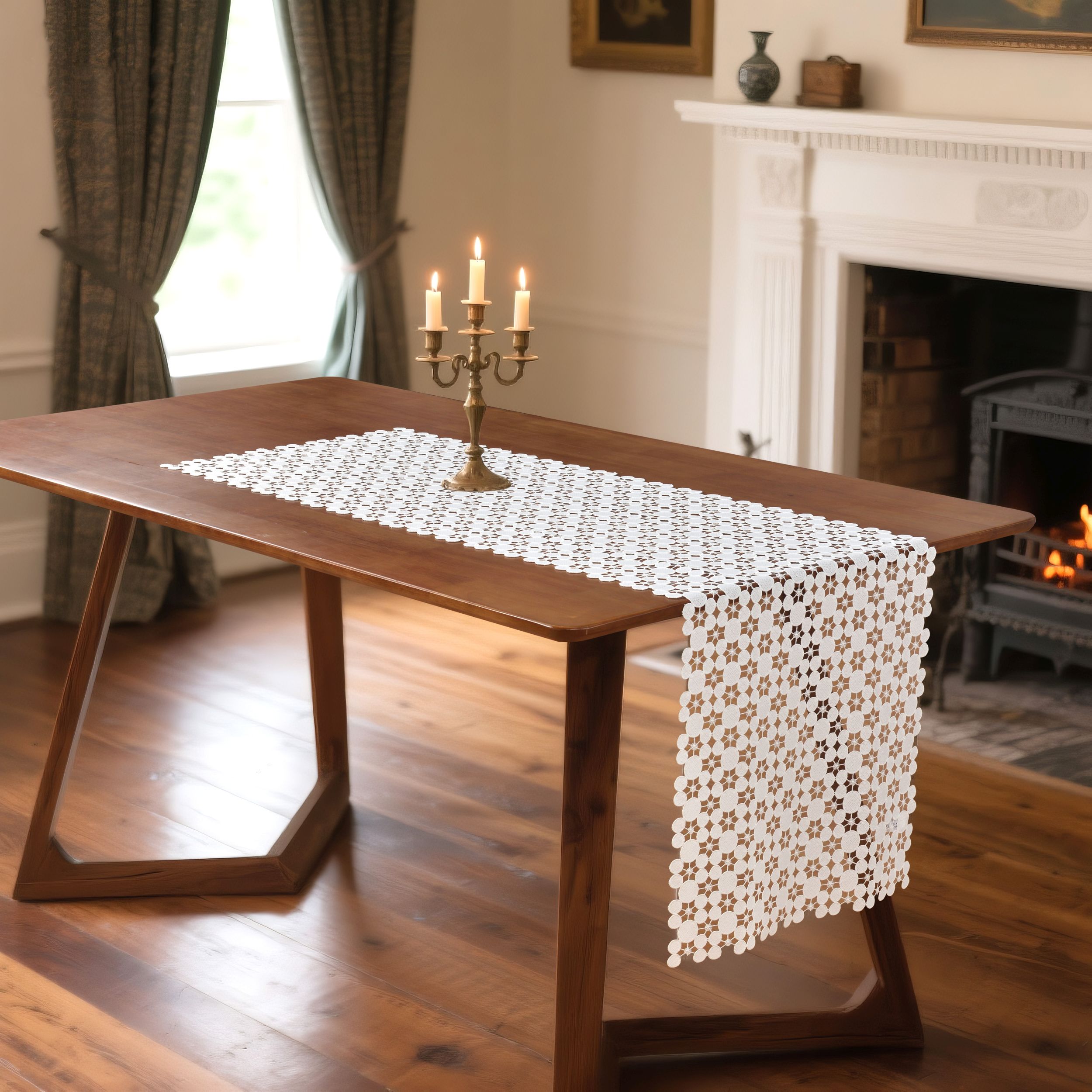 Przedstawiamy elegancki bieżnik wykonany z wysokiej jakości gipiury, który doda szyku i uroku każdemu wnętrzu. Ten starannie zaprojektowany dodatek do dekoracji stołu, ławy lub komody charakteryzuje się klasycznym motywem , który idealnie komponuje się z różnorodnymi stylami , od tradycyjnych po nowoczesne. Wyrafinowany wzór koronki zapewnia przepiękne prześwity, tworząc subtelną grę światła i cienia na powierzchni stołu.