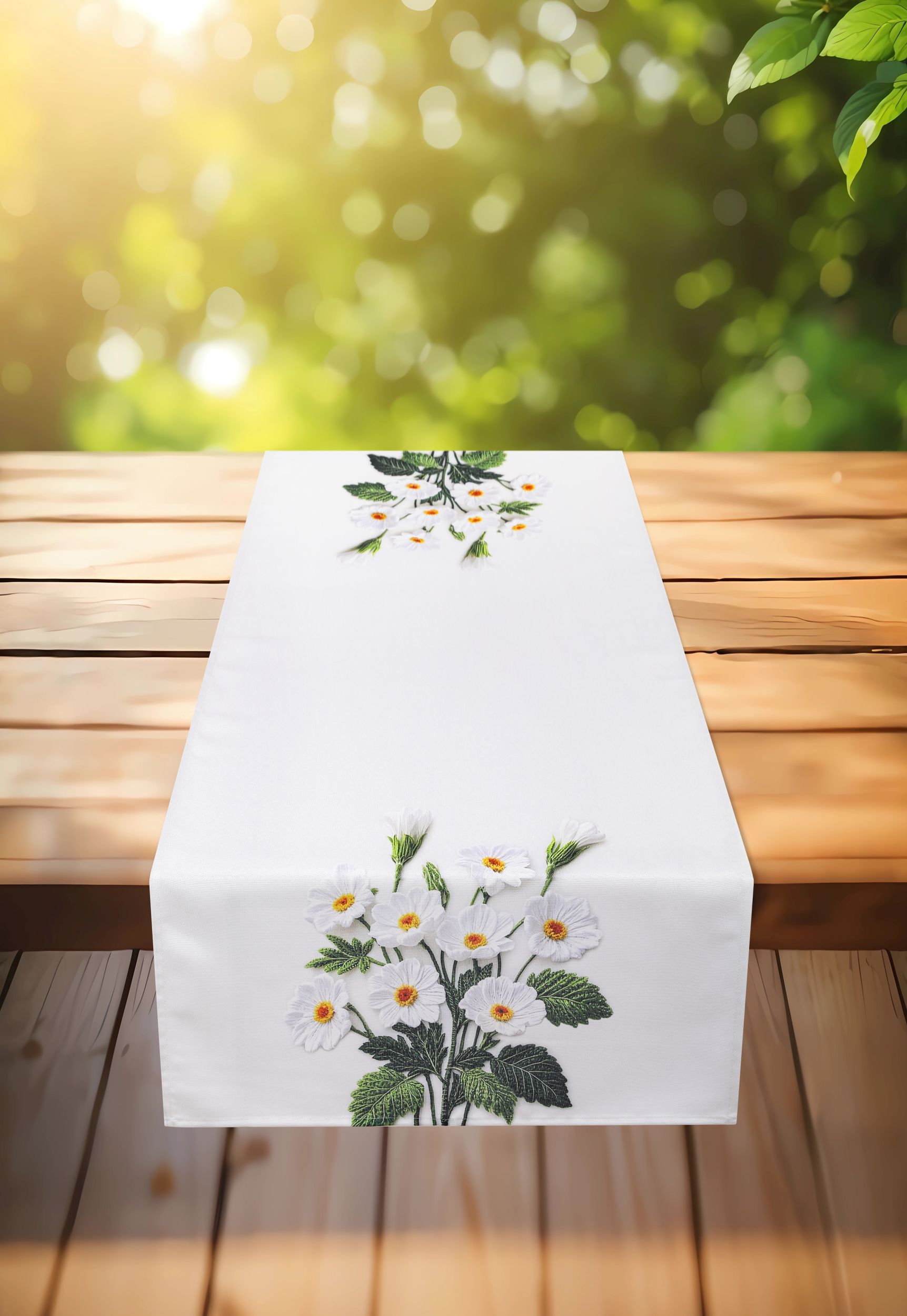 Bieżnik wykonany z poliestru, ozdobiony efektownym, kwiatowym nadrukiem , zachwyca lekką i świeżą kompozycją inspirowaną wiosenną łąką. Gładka struktura tkaniny podkreśla intensywność barw i precyzję nadruku, a praktyczny poliester sprawia, że bieżnik jest łatwy w codziennym użytkowaniu i stanowi dekoracyjny akcent stołu w jadalni, kuchni lub salonie, chroniąc jednocześnie blat przed zabrudzeniami i nadając aranżacji lekkości oraz świeżości.