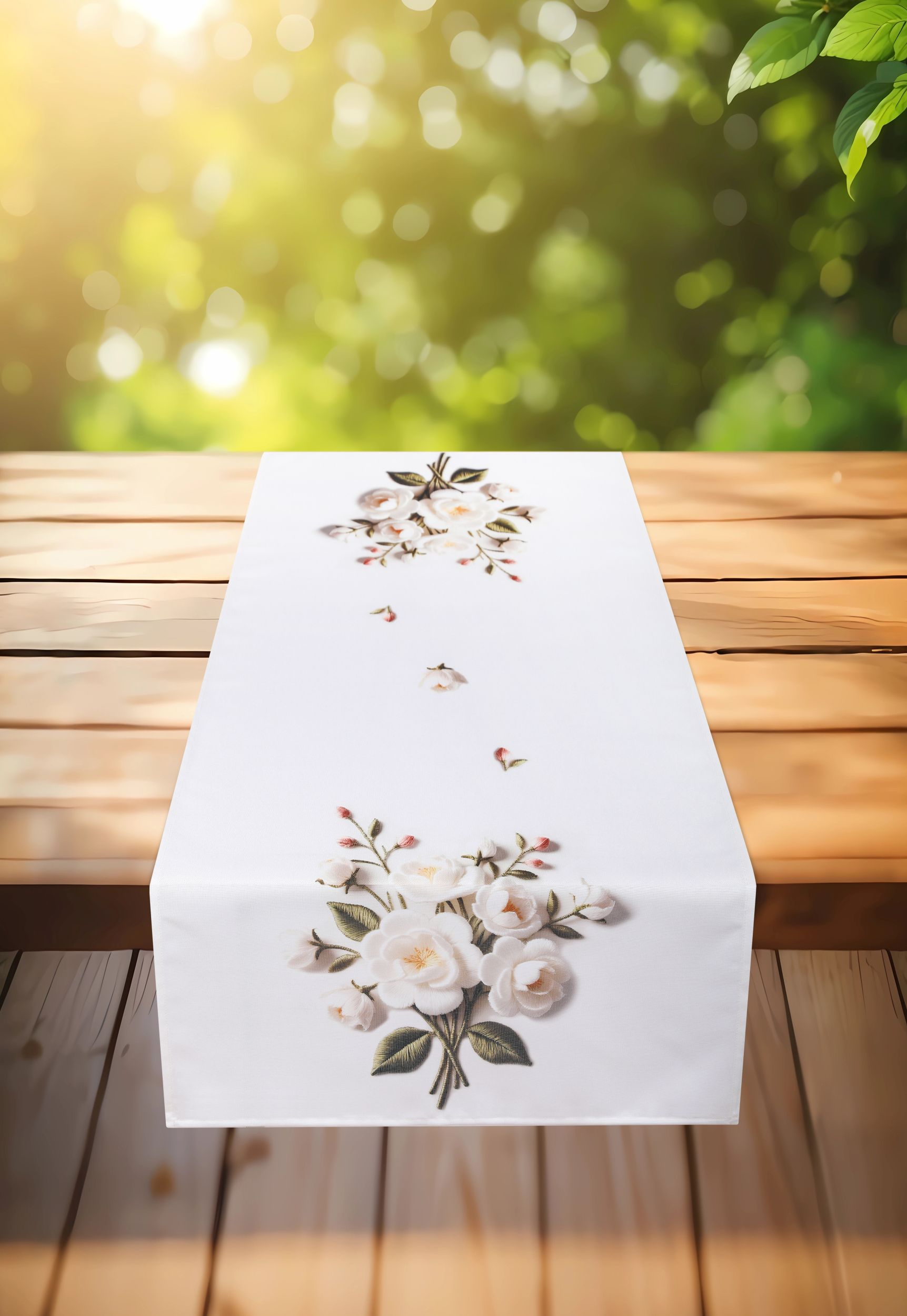 Bieżnik wykonany z poliestru, ozdobiony efektownym, kwiatowym nadrukiem , zachwyca lekką i świeżą kompozycją inspirowaną wiosenną łąką. Gładka struktura tkaniny podkreśla intensywność barw i precyzję nadruku, a praktyczny poliester sprawia, że bieżnik jest łatwy w codziennym użytkowaniu i stanowi dekoracyjny akcent stołu w jadalni, kuchni lub salonie, chroniąc jednocześnie blat przed zabrudzeniami i nadając aranżacji lekkości oraz świeżości.