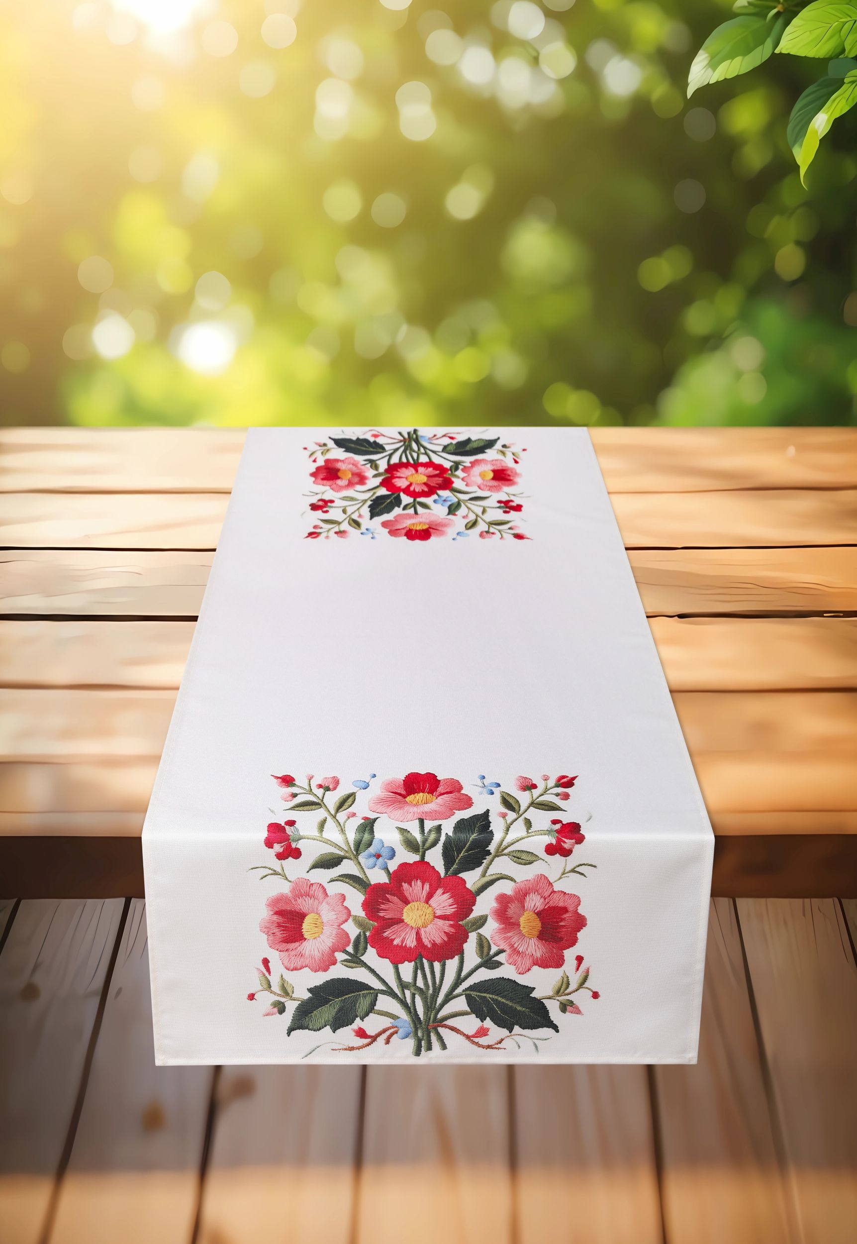 Bieżnik wykonany z poliestru, ozdobiony efektownym, kwiatowym nadrukiem , zachwyca lekką i świeżą kompozycją inspirowaną wiosenną łąką. Gładka struktura tkaniny podkreśla intensywność barw i precyzję nadruku, a praktyczny poliester sprawia, że bieżnik jest łatwy w codziennym użytkowaniu i stanowi dekoracyjny akcent stołu w jadalni, kuchni lub salonie, chroniąc jednocześnie blat przed zabrudzeniami i nadając aranżacji lekkości oraz świeżości.