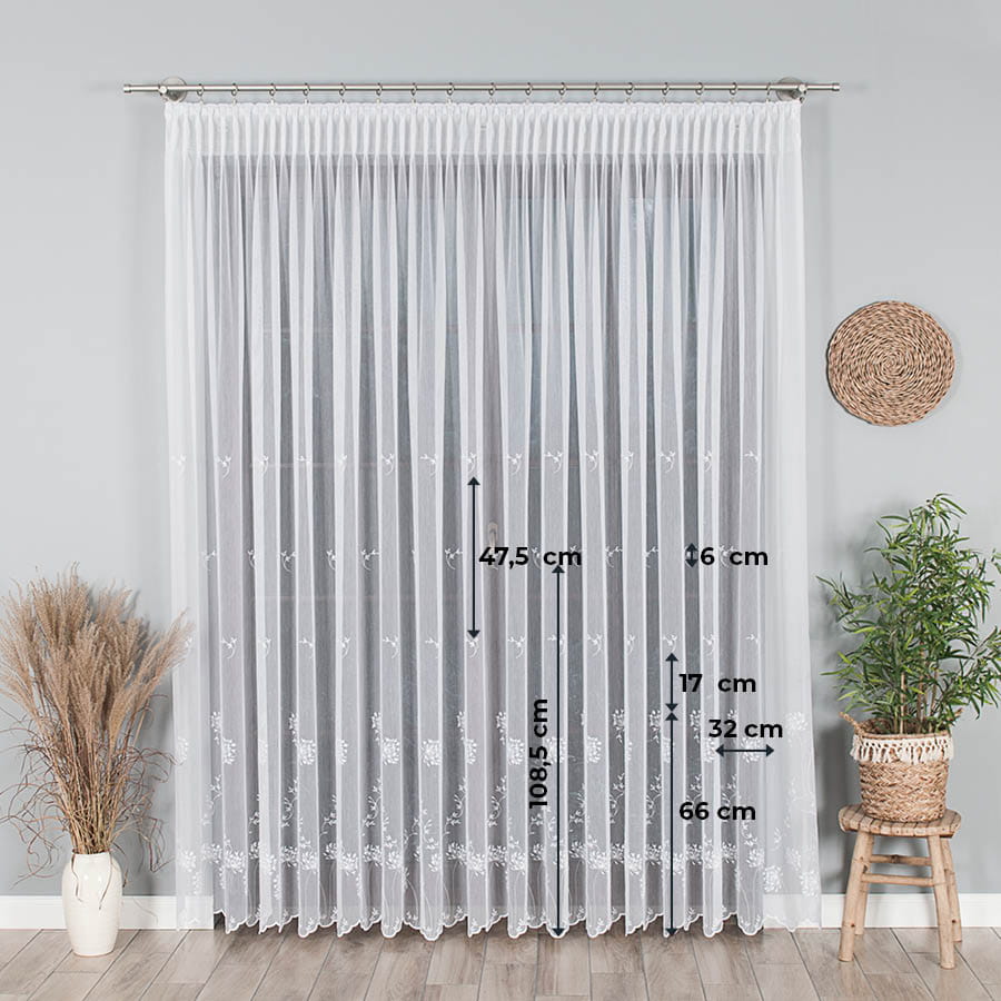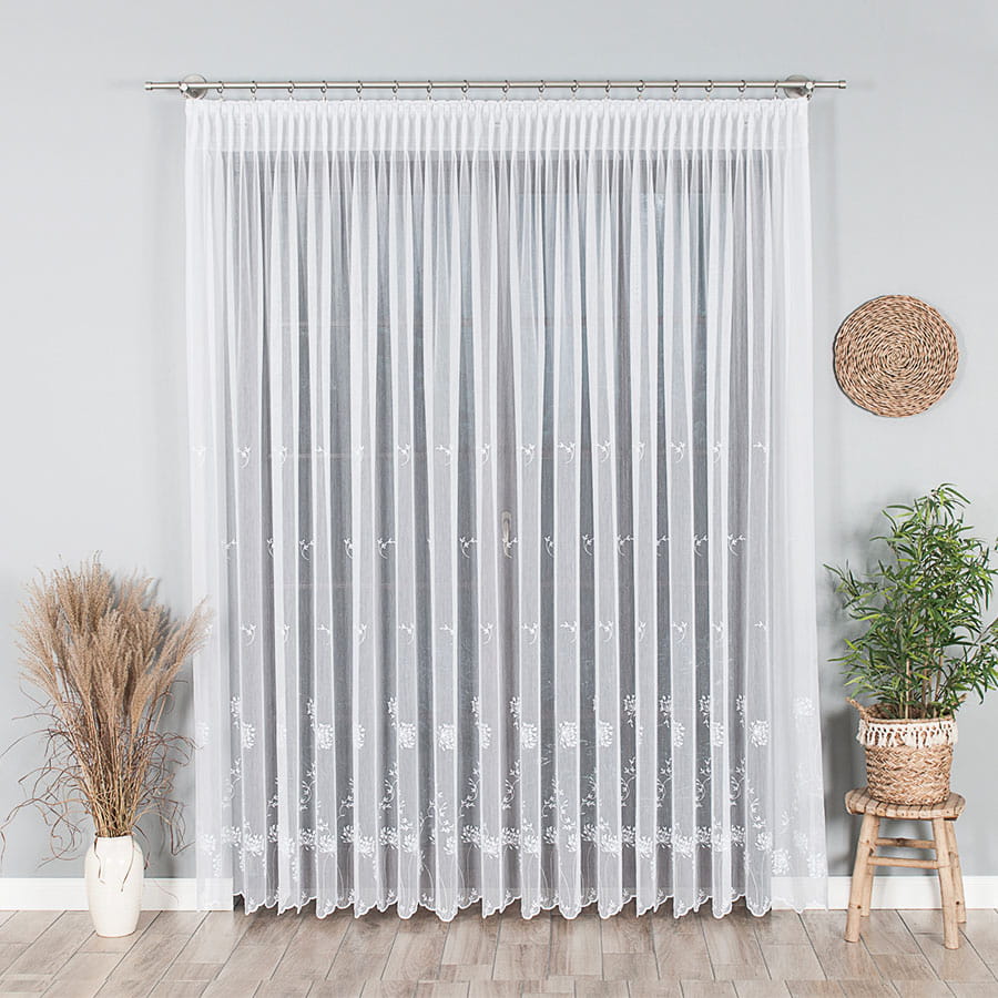 | Firanka haftowana ze wzorem pasowym, wysokość 280cm, kolor 001 biały | ||