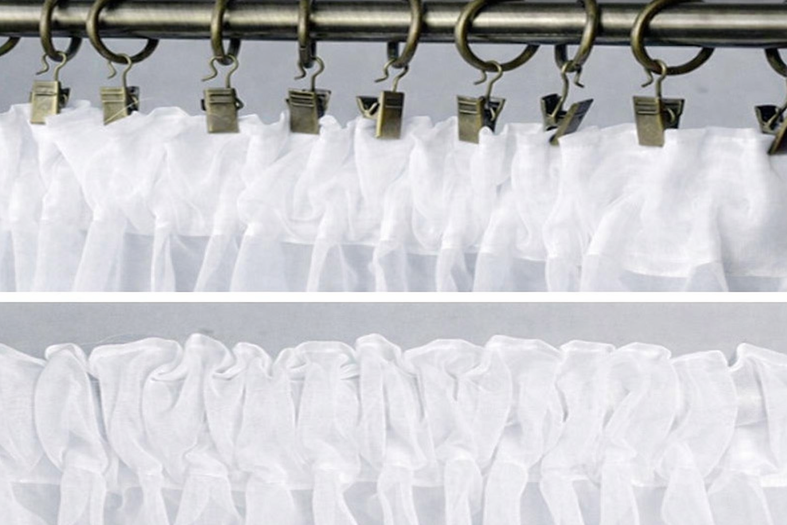 Posiada obszyte boki i u góry wszytą taśmę marszczącą
