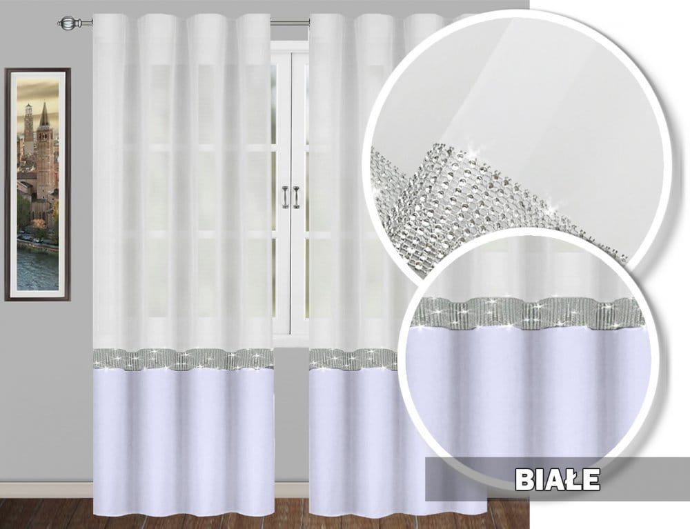 Elementem, który jeszcze bardziej ozdabia całą firanę, to cyrkonie połyskujące w świetle dziennym, scalające oba te materiały.