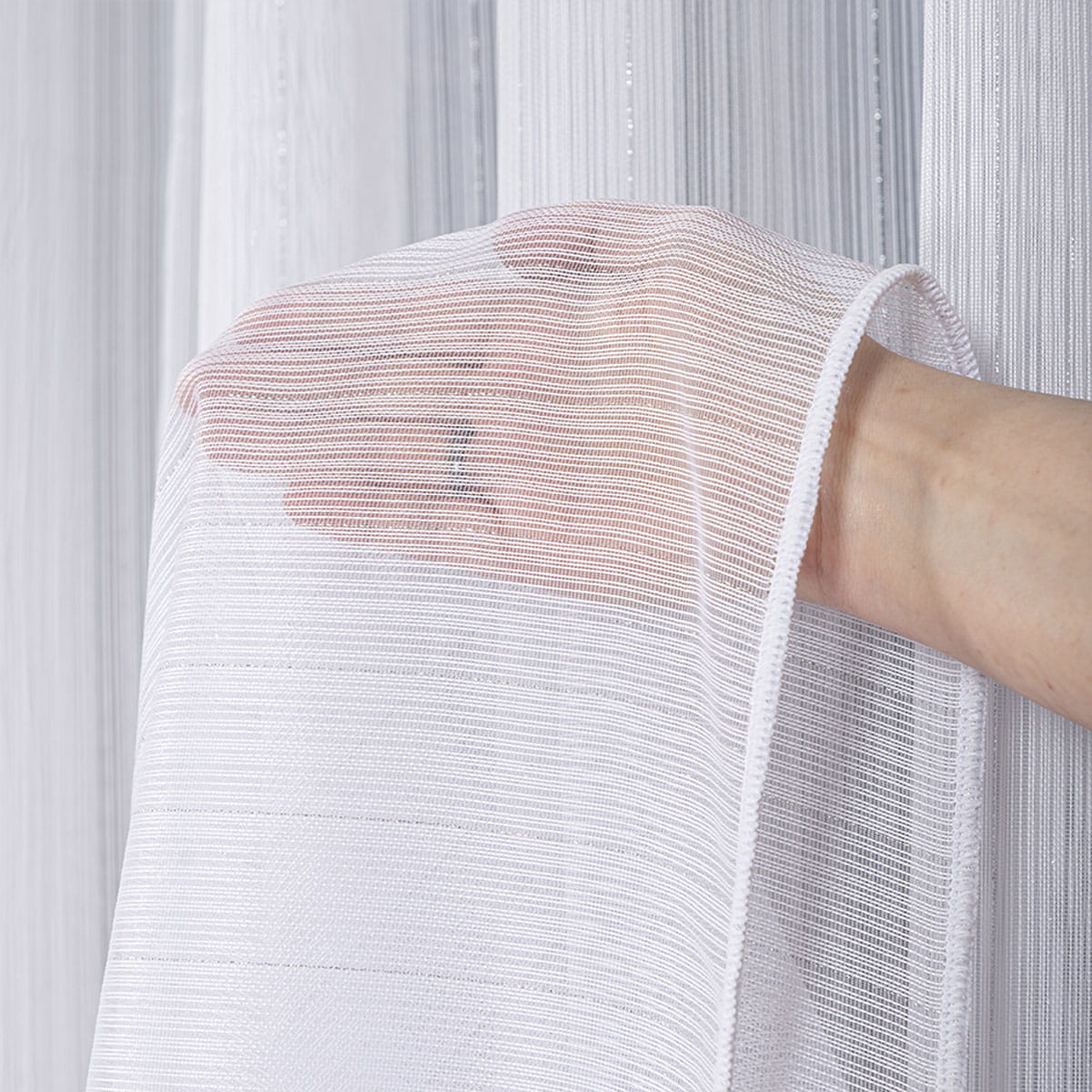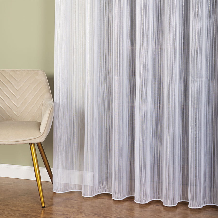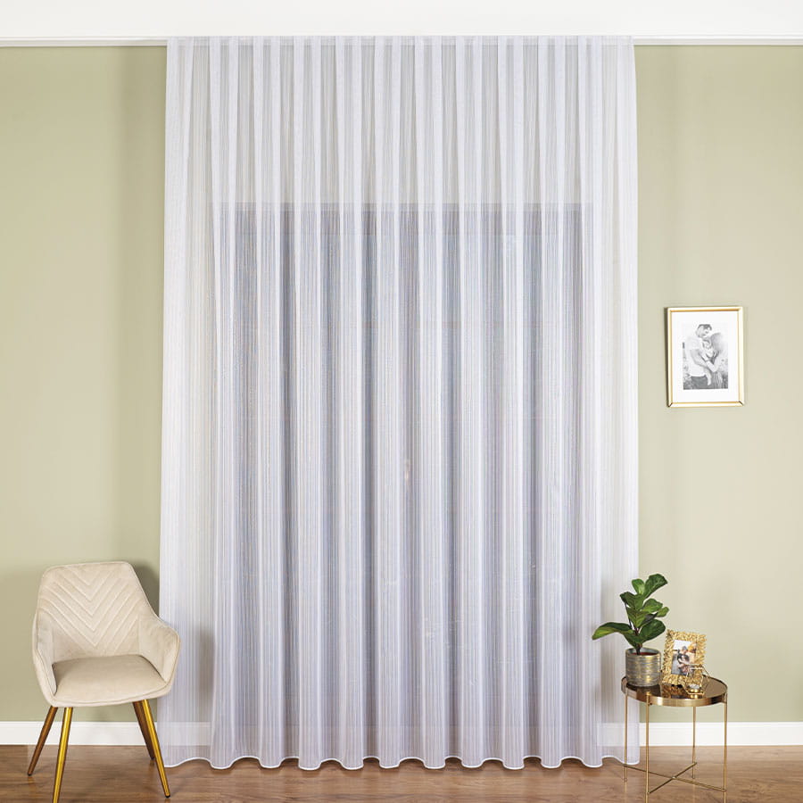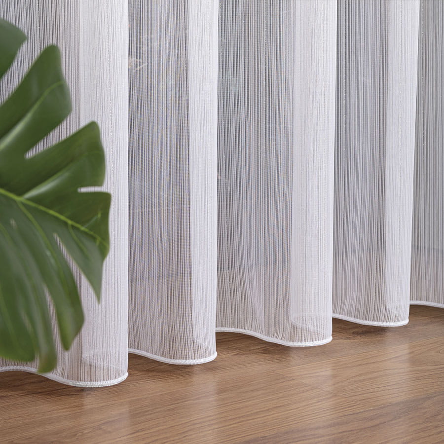 Firana fantazyjna 1238 OLO 001 300 - kolor biały ze srebrną , błyszczącą nitką.