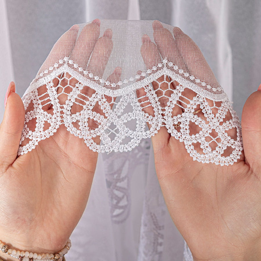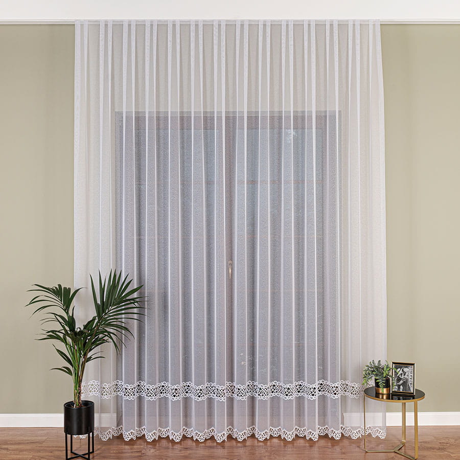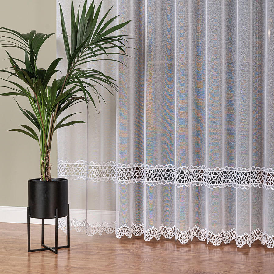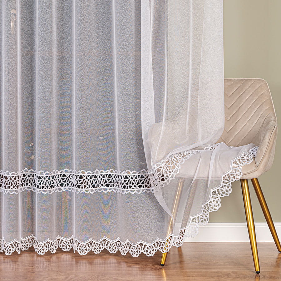 Firanka z aplikacją ze wzorem pasowym na markizecie,