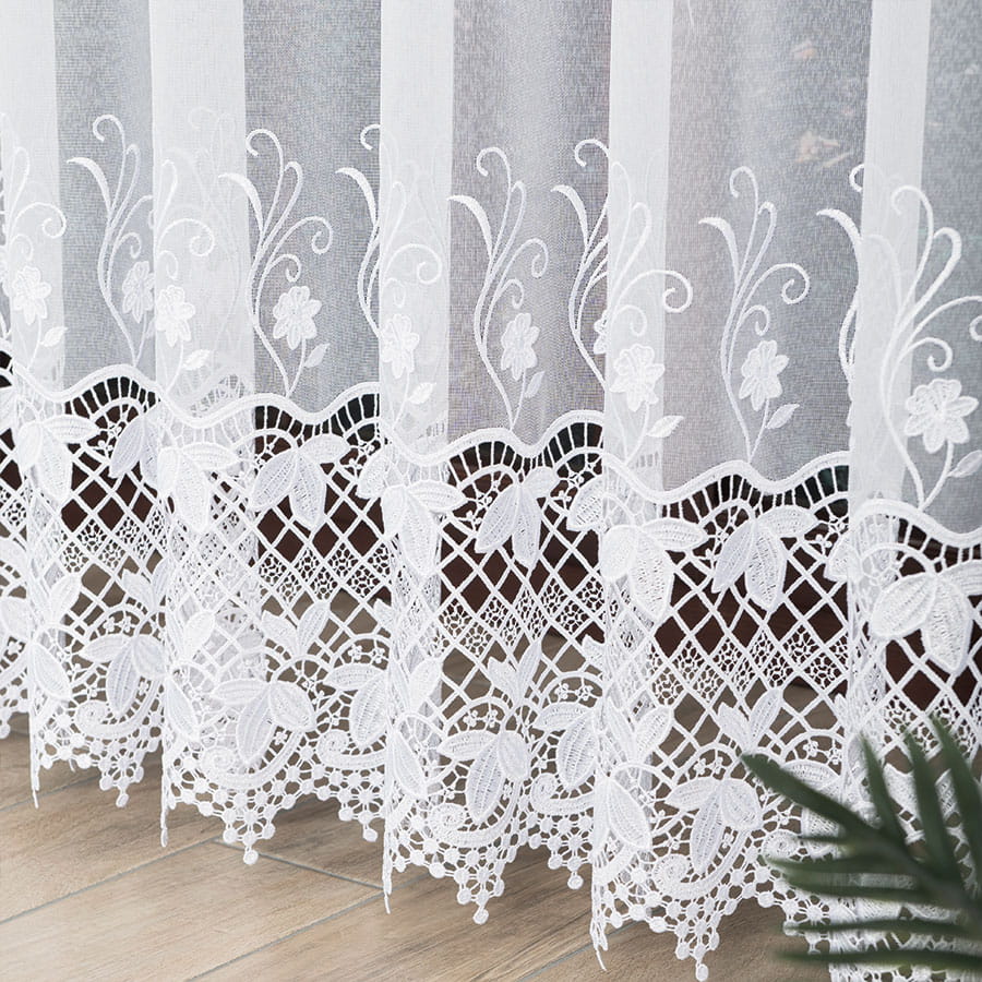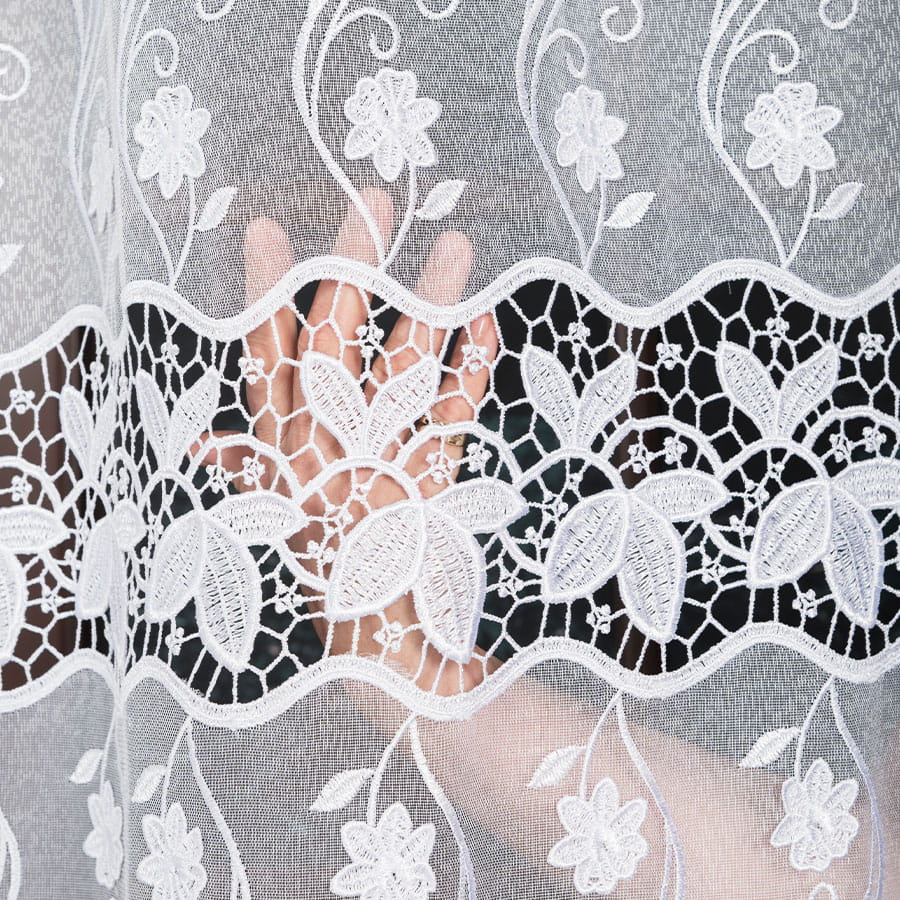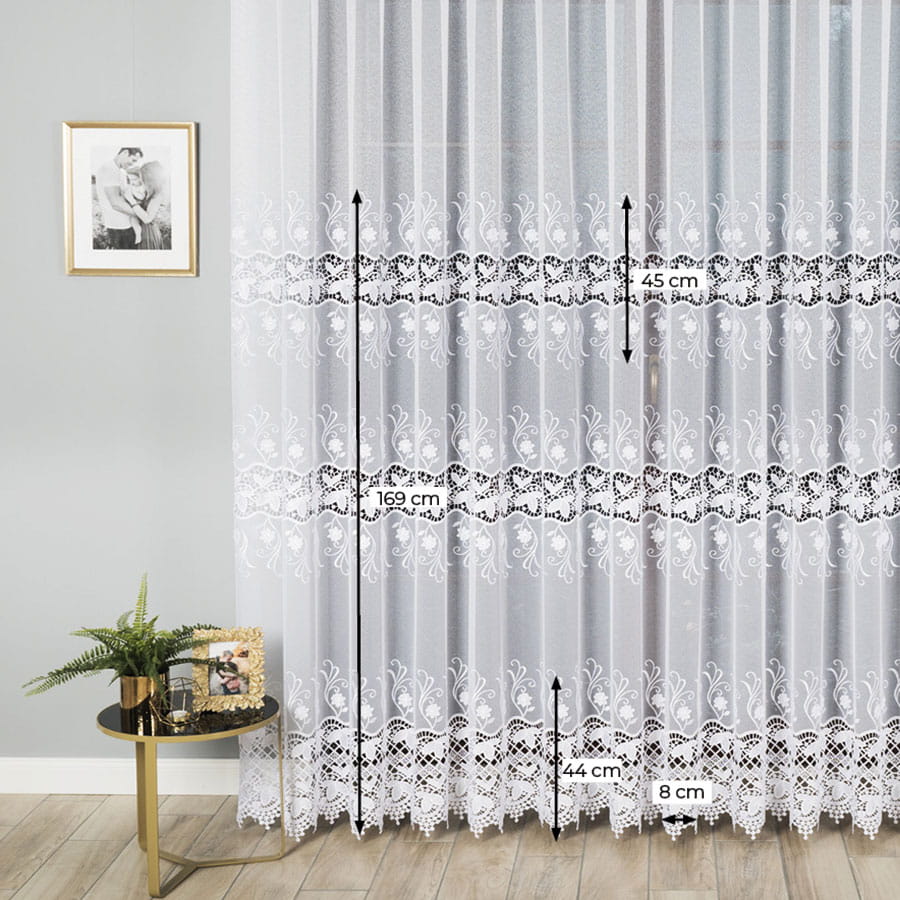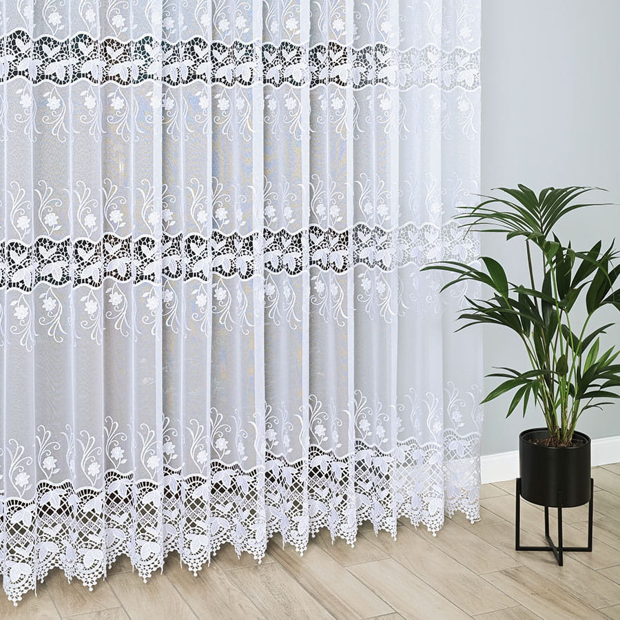 Firanka z aplikacją na markizecie ze wzorem pasowym,