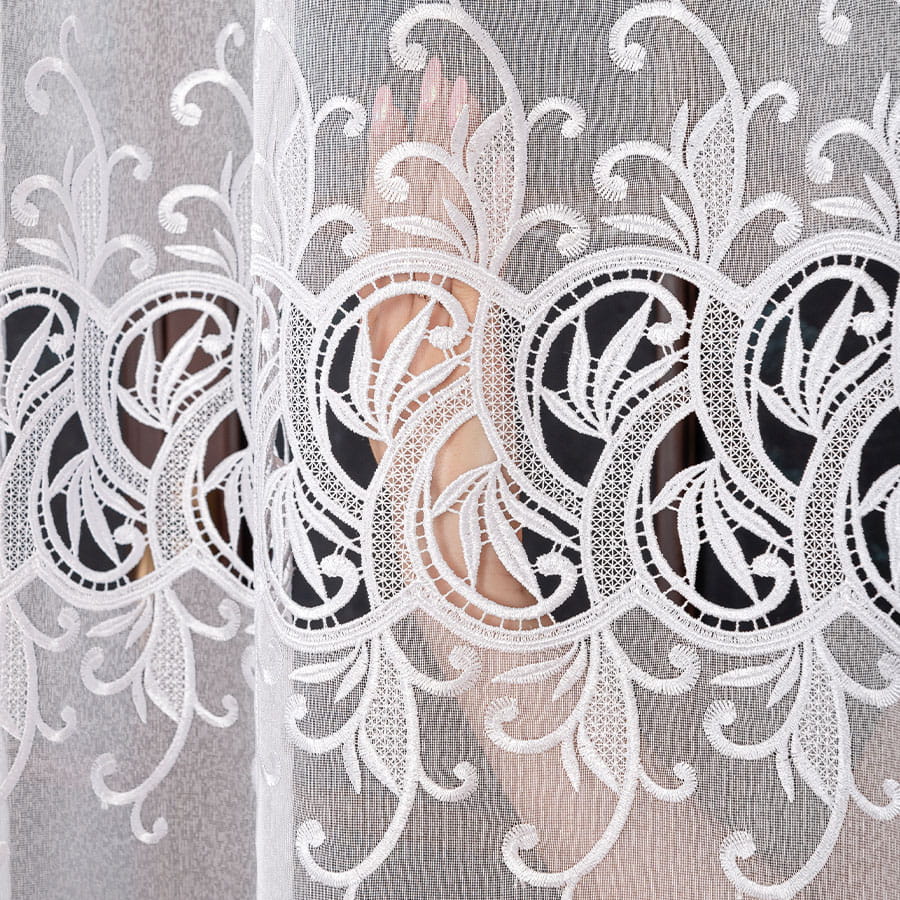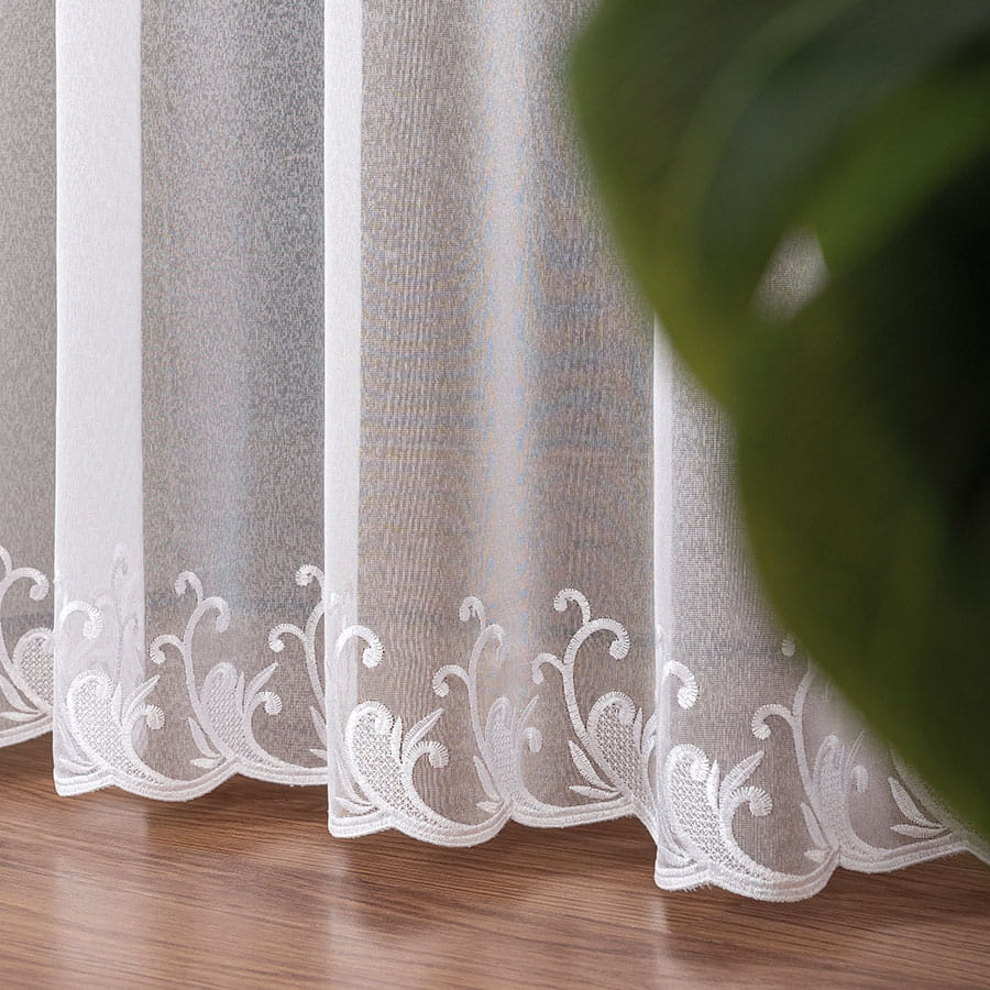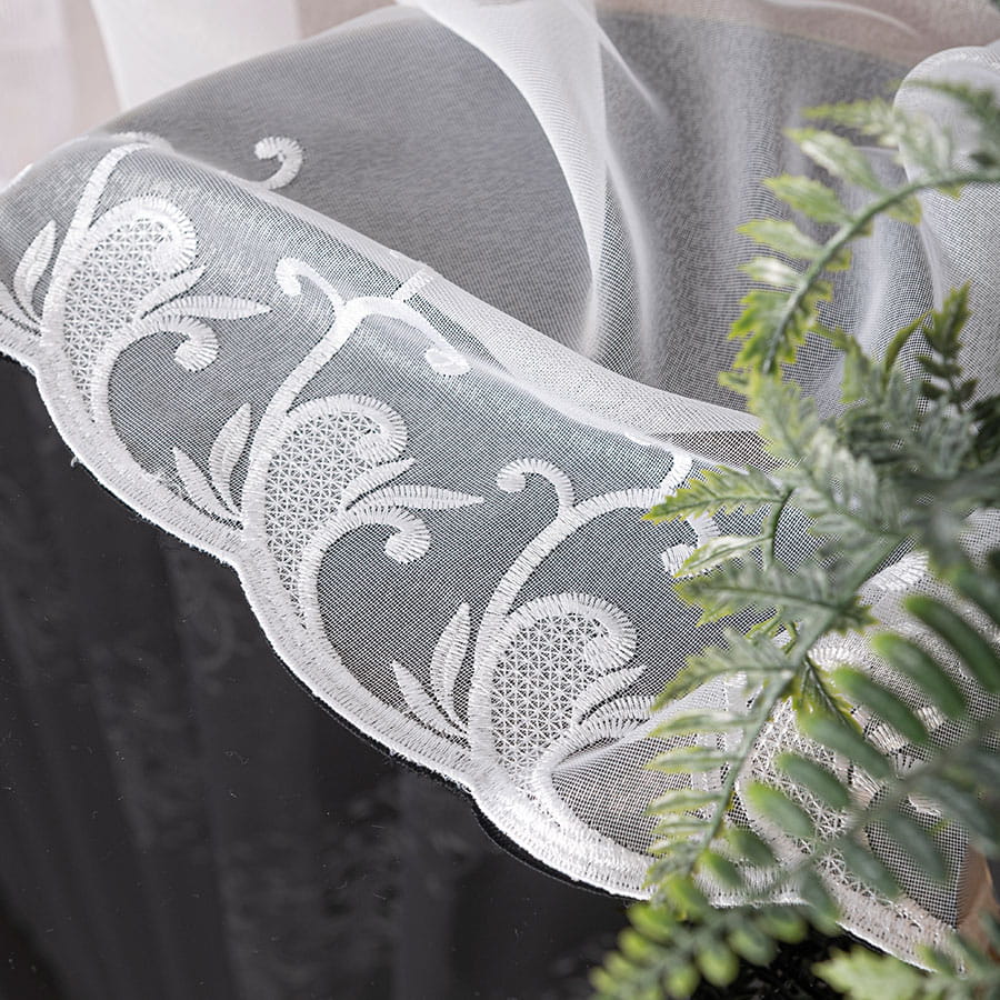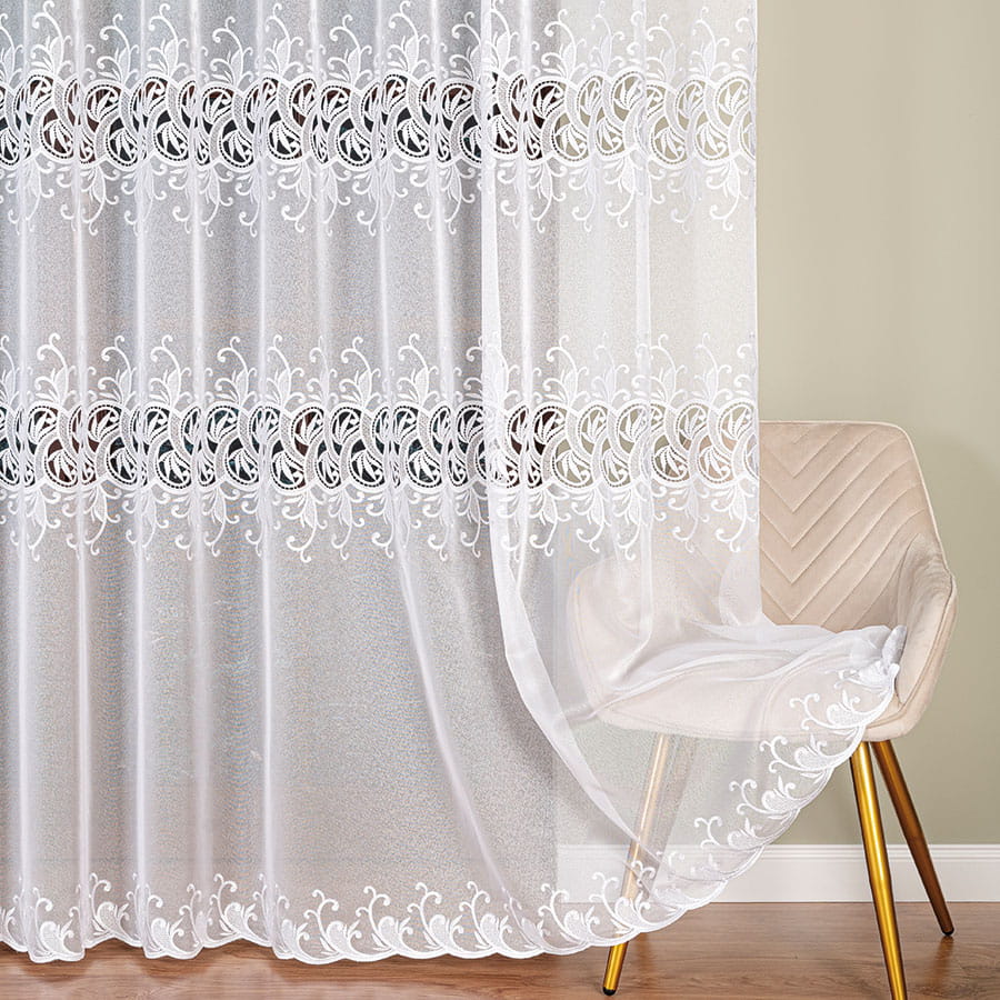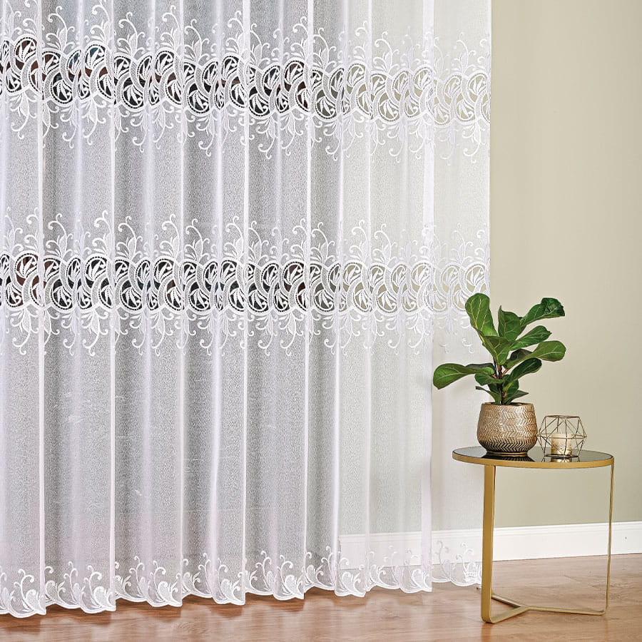 Firanka z aplikacją na markizecie ze wzorem pasowym,