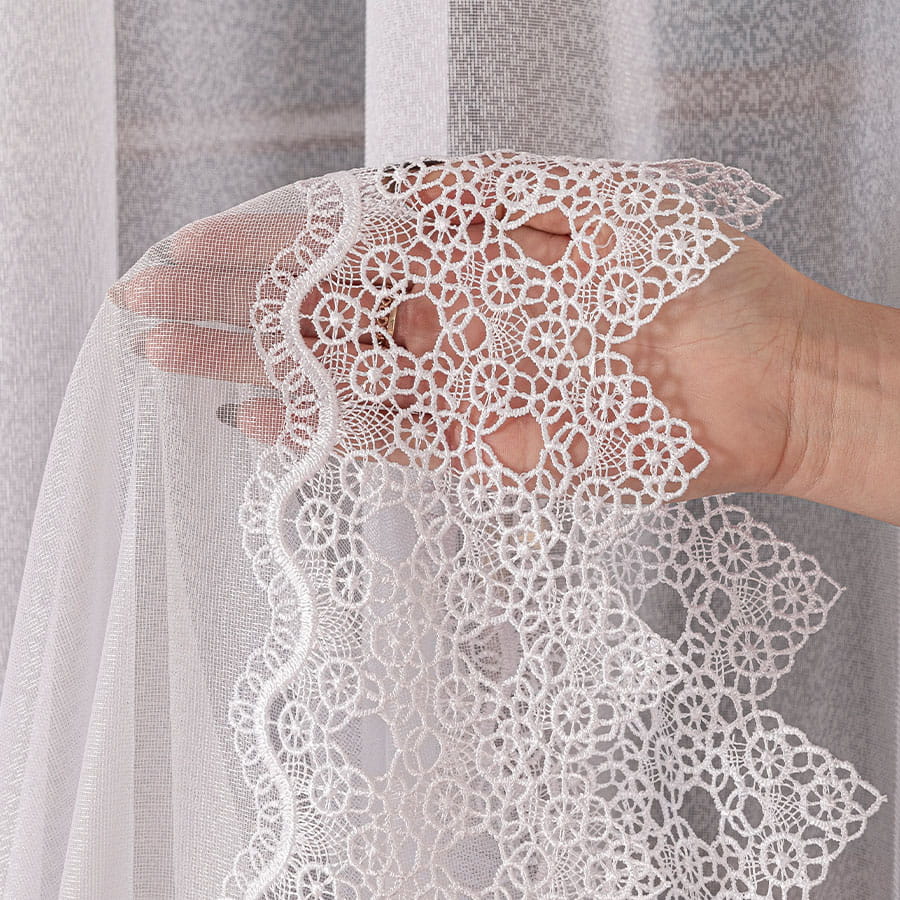 Firanka z aplikacją ze wzorem pasowym na markizecie,