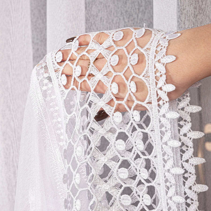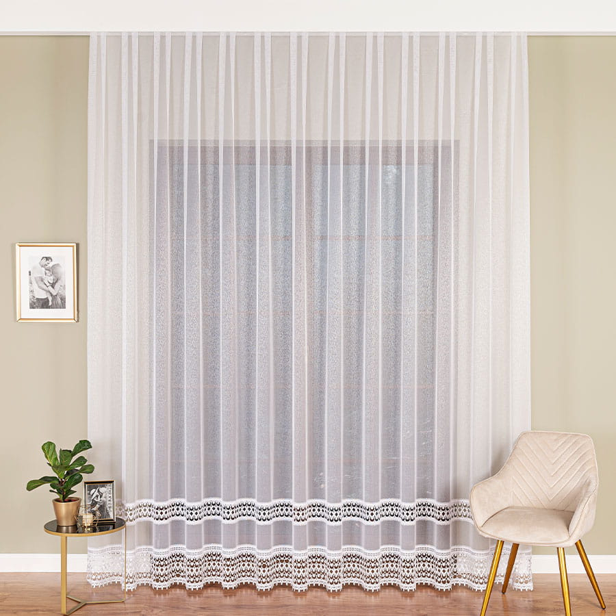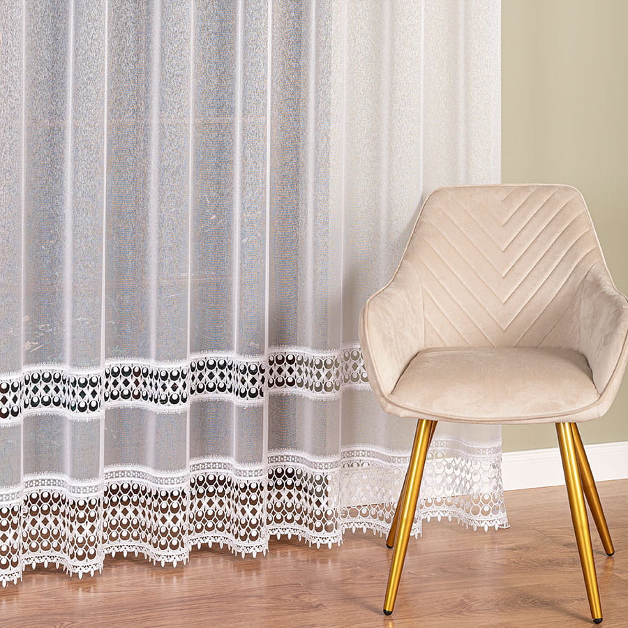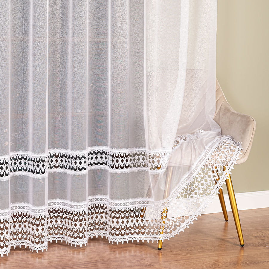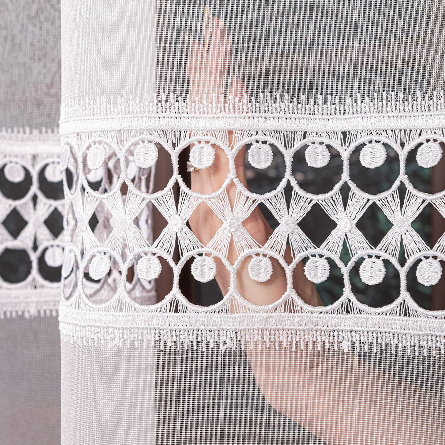 Firanka z aplikacją na markizecie ze wzorem pasowym,