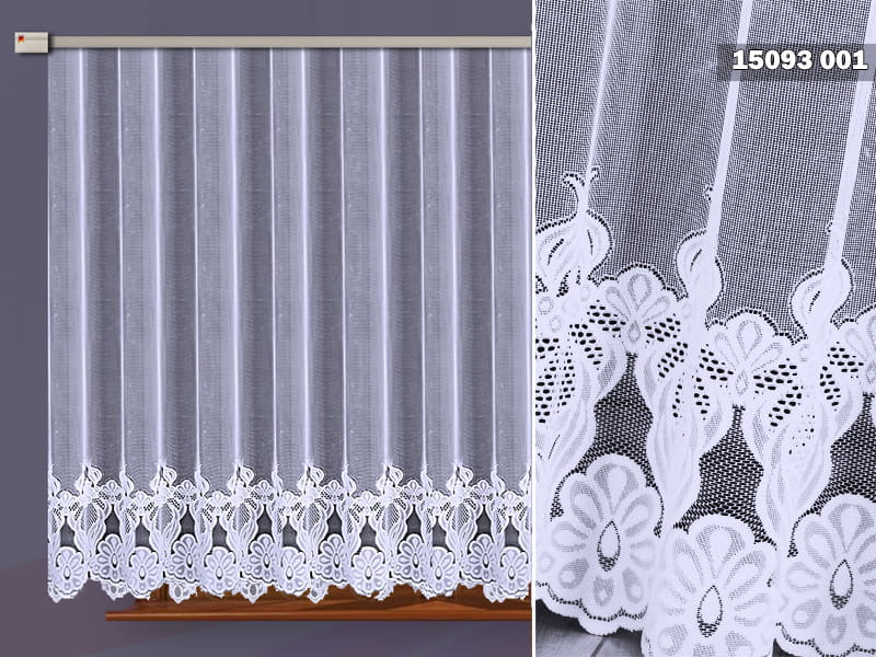 Firanka żakardowa wykonana z wysokiej jakości przędzy nabłyszczanej.