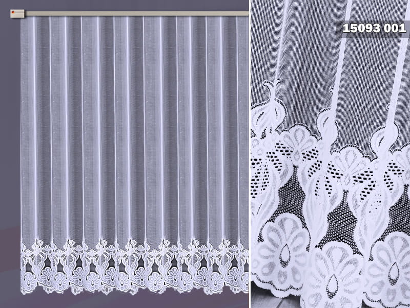 Firanka żakardowa wykonana z wysokiej jakości przędzy nabłyszczanej.