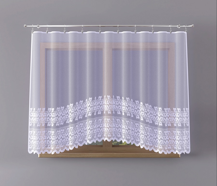 Firana gotowa - odpasowana wykonana z przędzy żakardowej.