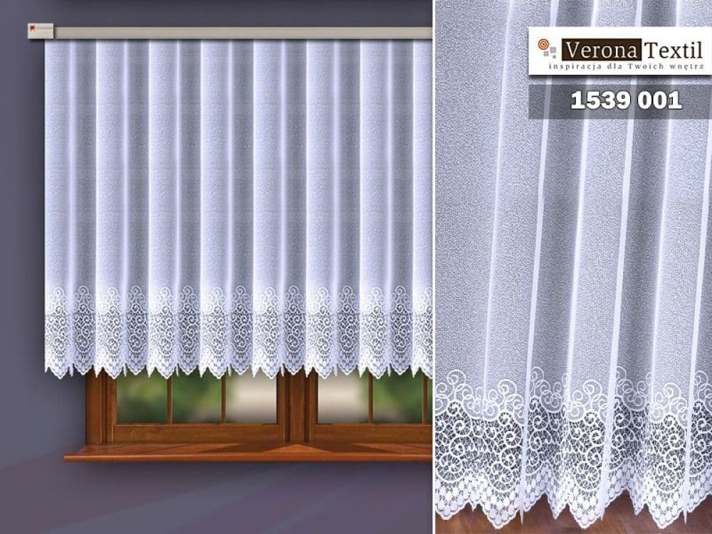 Firanka żakardowa wykonana z wysokiej jakości przędzy nabłyszczanej.