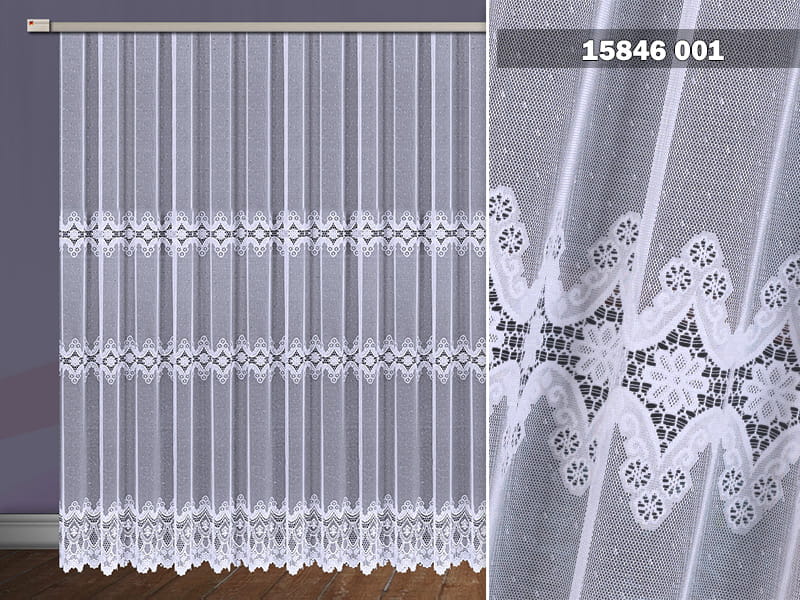 Firanka żakardowa wykonana z wysokiej jakości przędzy nabłyszczanej.