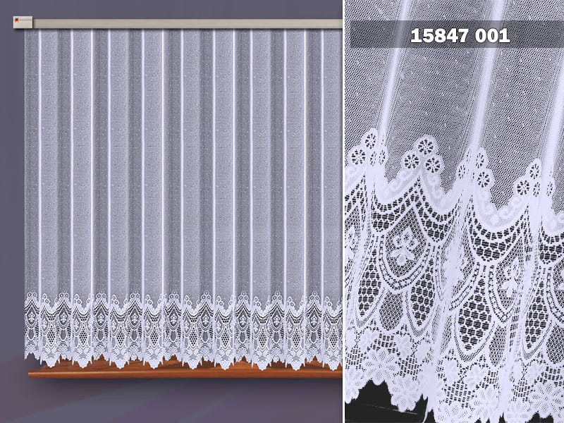 Firanka żakardowa wykonana z wysokiej jakości przędzy nabłyszczanej.