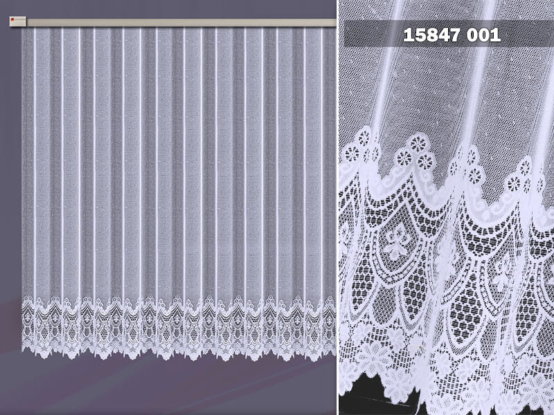 Firanka żakardowa wykonana z wysokiej jakości przędzy nabłyszczanej.