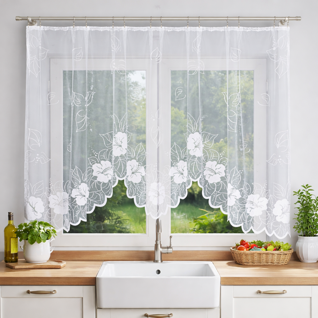 Firana gotowa - odpasowana wykonana z przędzy żakardowej.