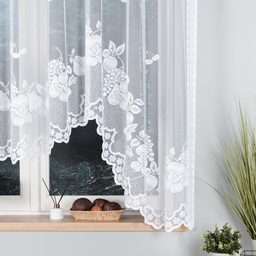 Firana gotowa - odpasowana wykonana z przędzy żakardowej.