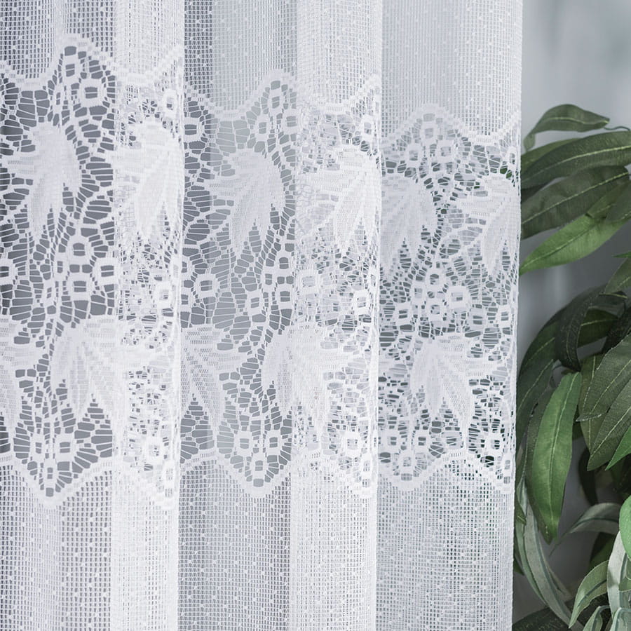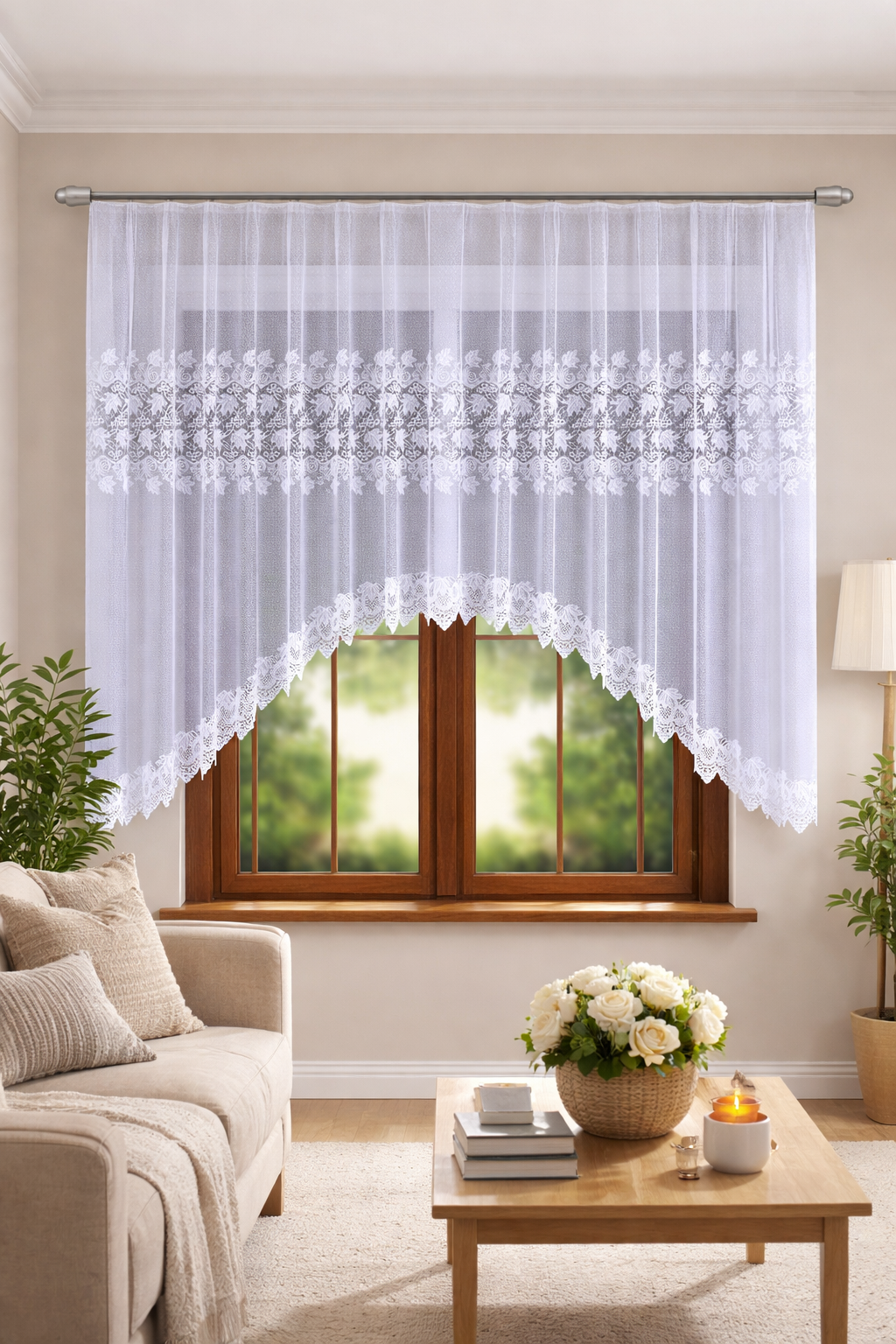 Firana gotowa - odpasowana wykonana z przędzy żakardowej.
