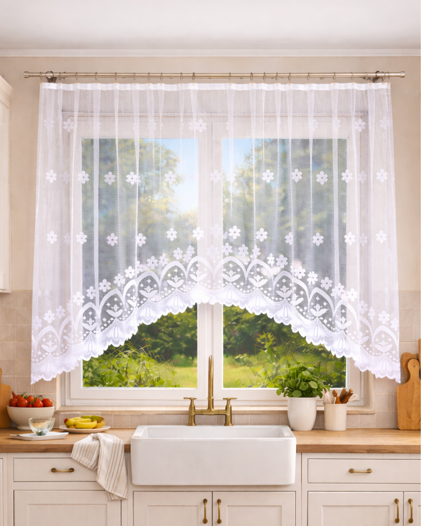 Firana gotowa - odpasowana wykonana z przędzy żakardowej.