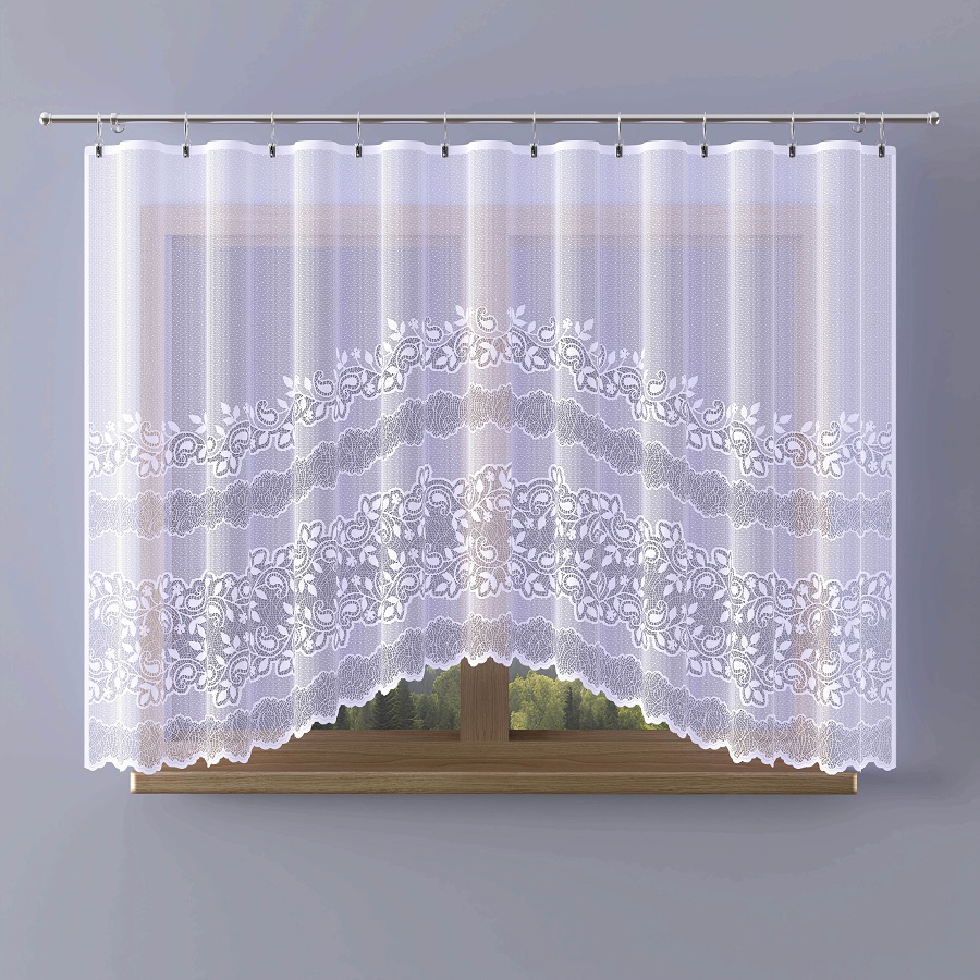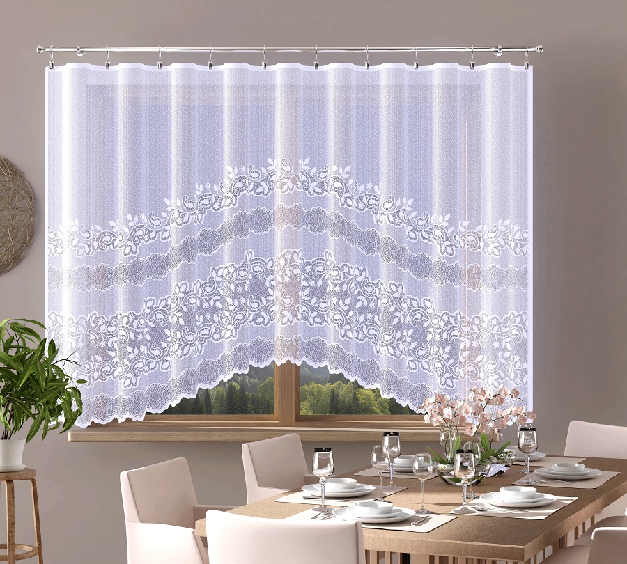 Firana gotowa -  odpasowana wykonana z przędzy żakardowej.