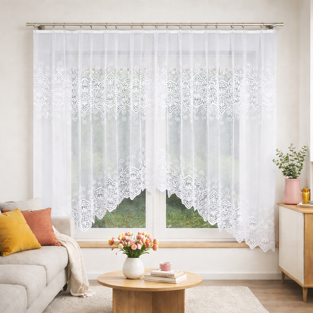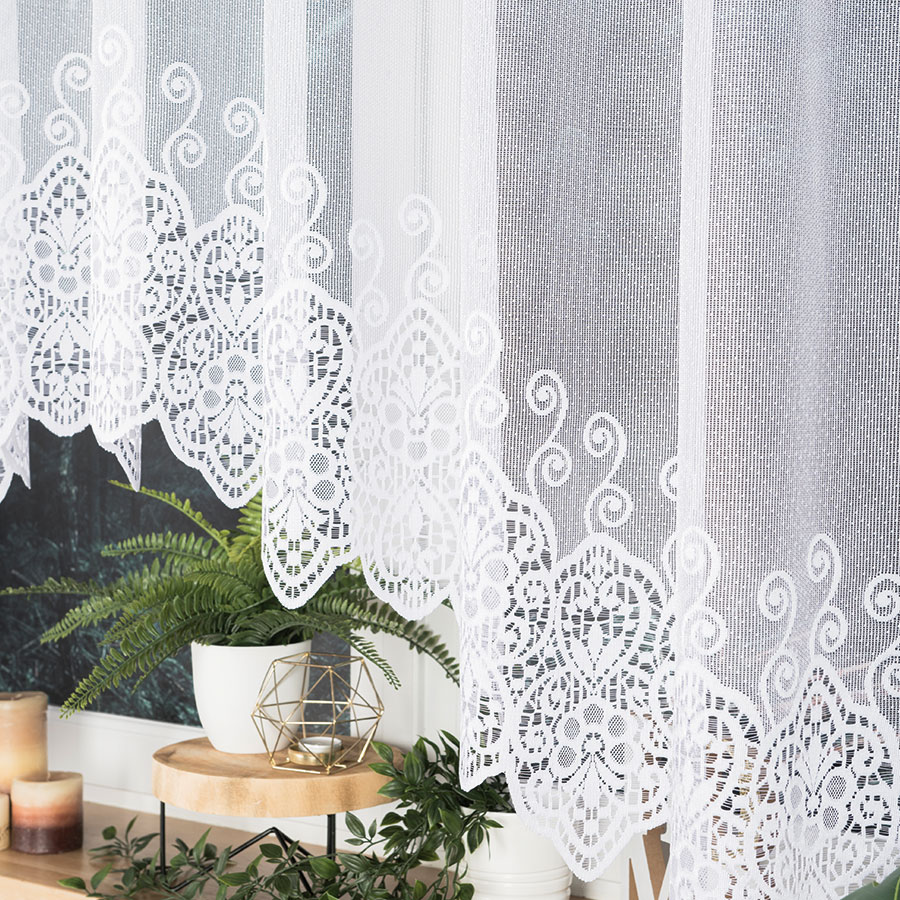 Firana gotowa - odpasowana wykonana z przędzy żakardowej.