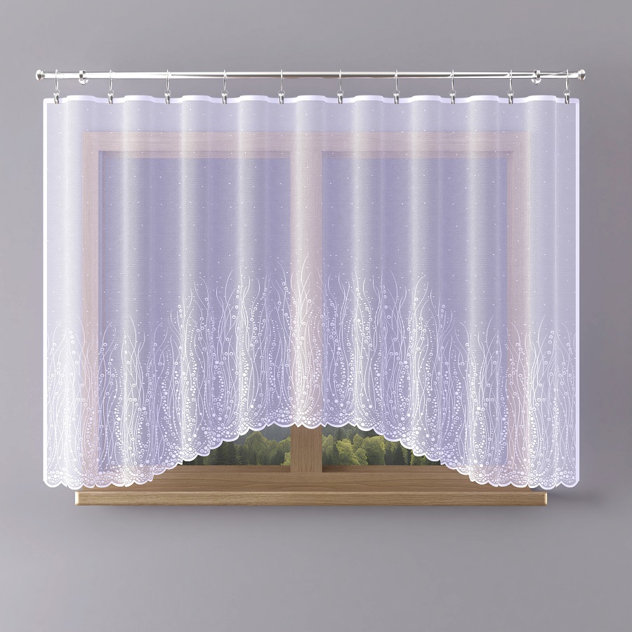 Firana gotowa -  odpasowana wykonana z przędzy żakardowej.