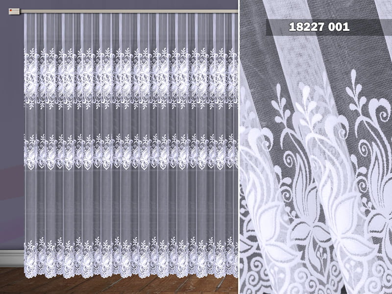 Firanka żakardowa wykonana z wysokiej jakości przędzy nabłyszczanej.