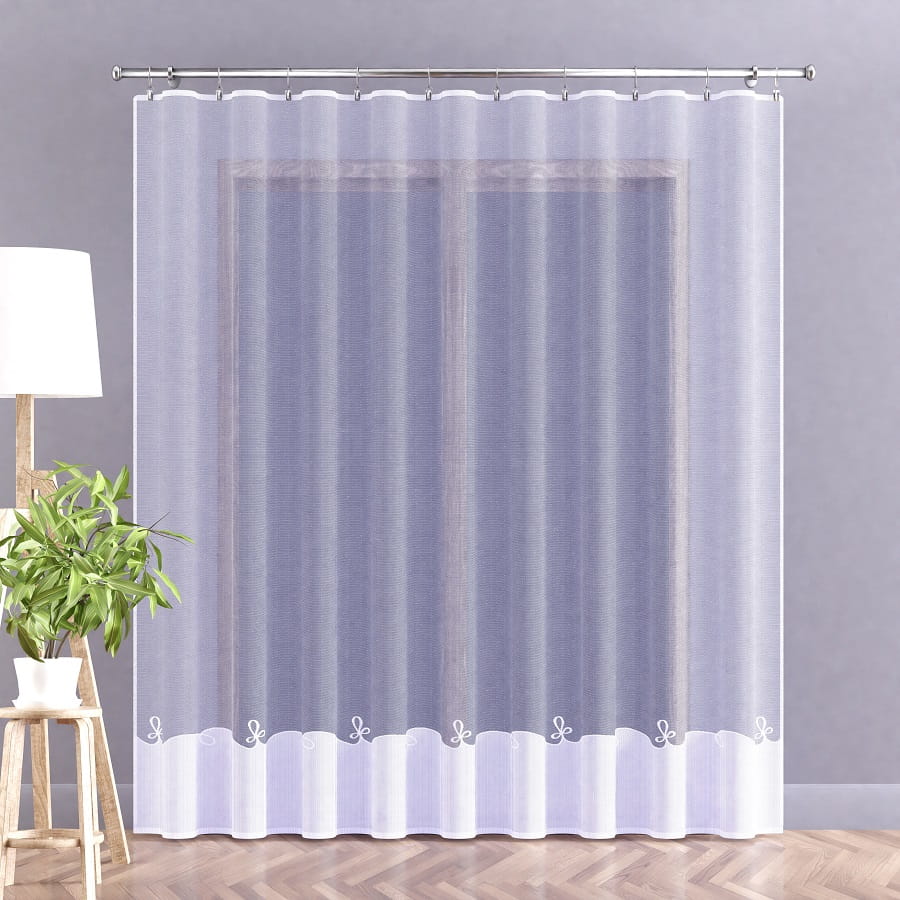 Firanka żakardowa wykonana z wysokiej jakości przędzy nabłyszczanej.
