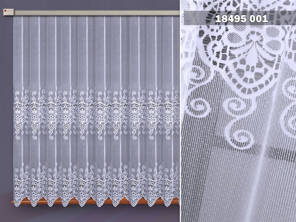 Firanka żakardowa wykonana z wysokiej jakości przędzy nabłyszczanej.