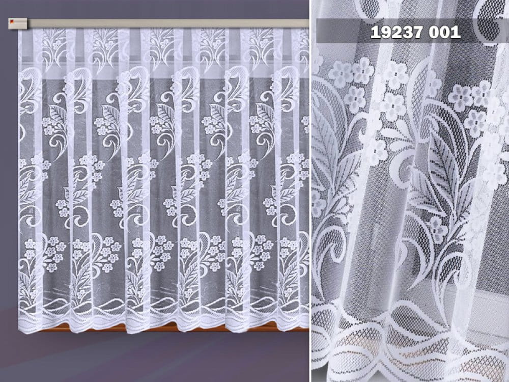 Firanka żakardowa wykonana z wysokiej jakości przędzy nabłyszczanej.