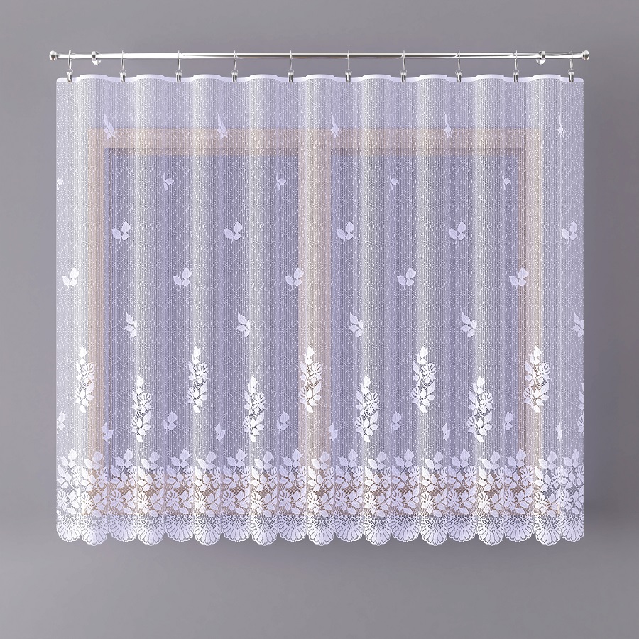 Firanka żakardowa wykonana z wysokiej jakości przędzy.
