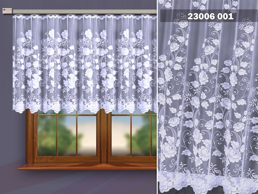 Firanka żakardowa wykonana z wysokiej jakości przędzy nabłyszczanej.