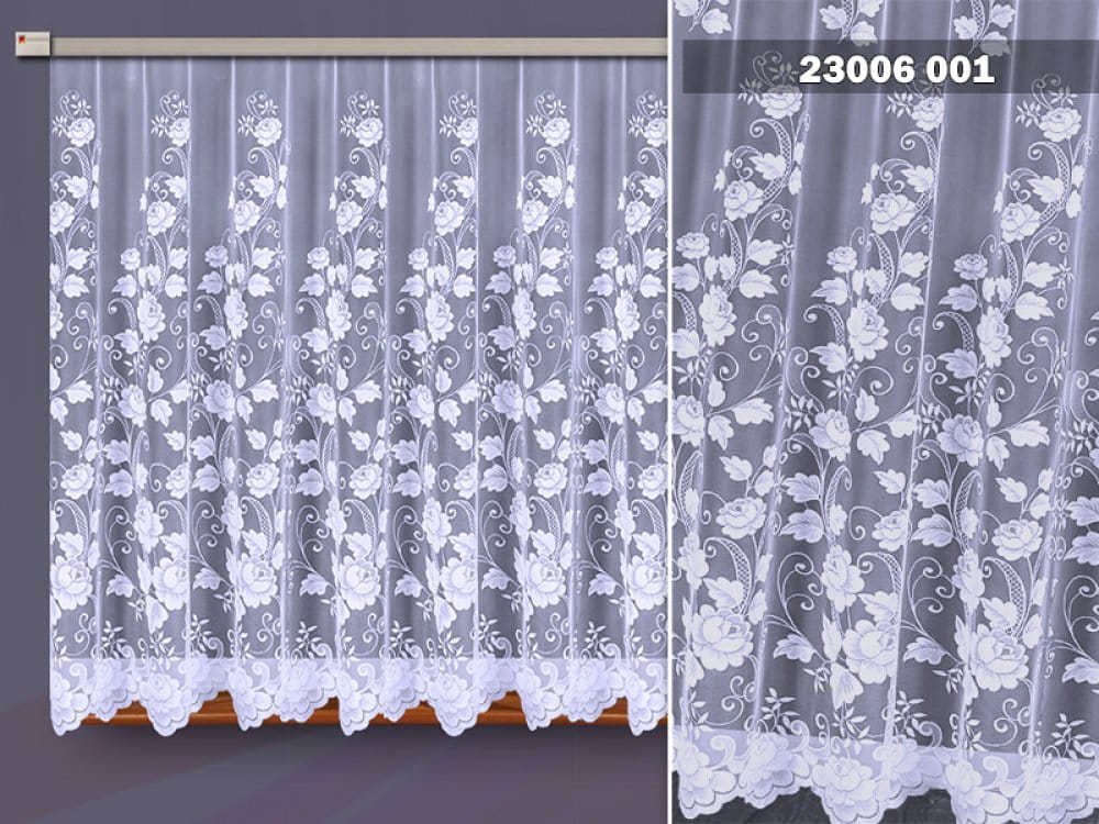 Firanka żakardowa wykonana z wysokiej jakości przędzy nabłyszczanej.