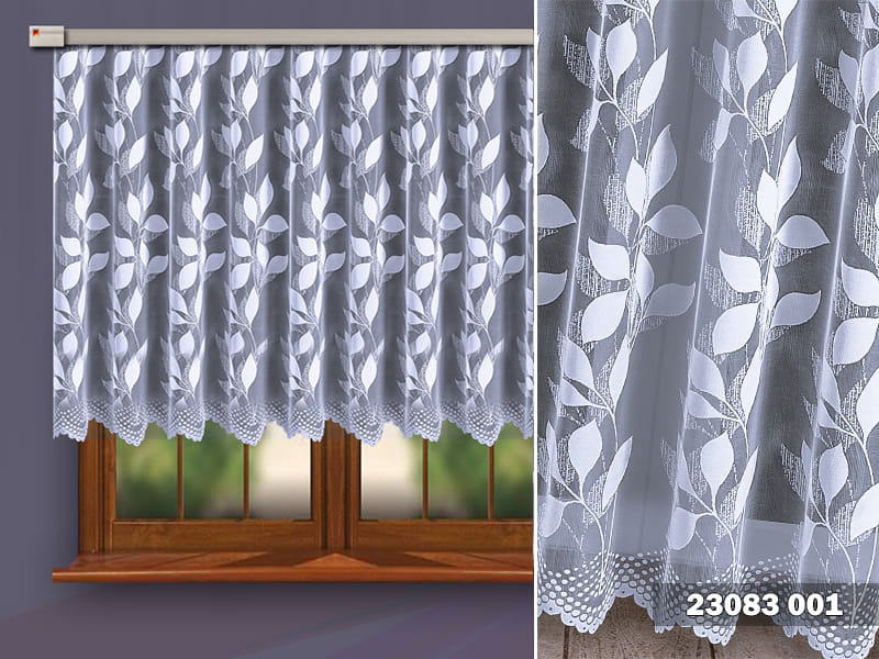 Firanka żakardowa wykonana z wysokiej jakości przędzy nabłyszczanej.