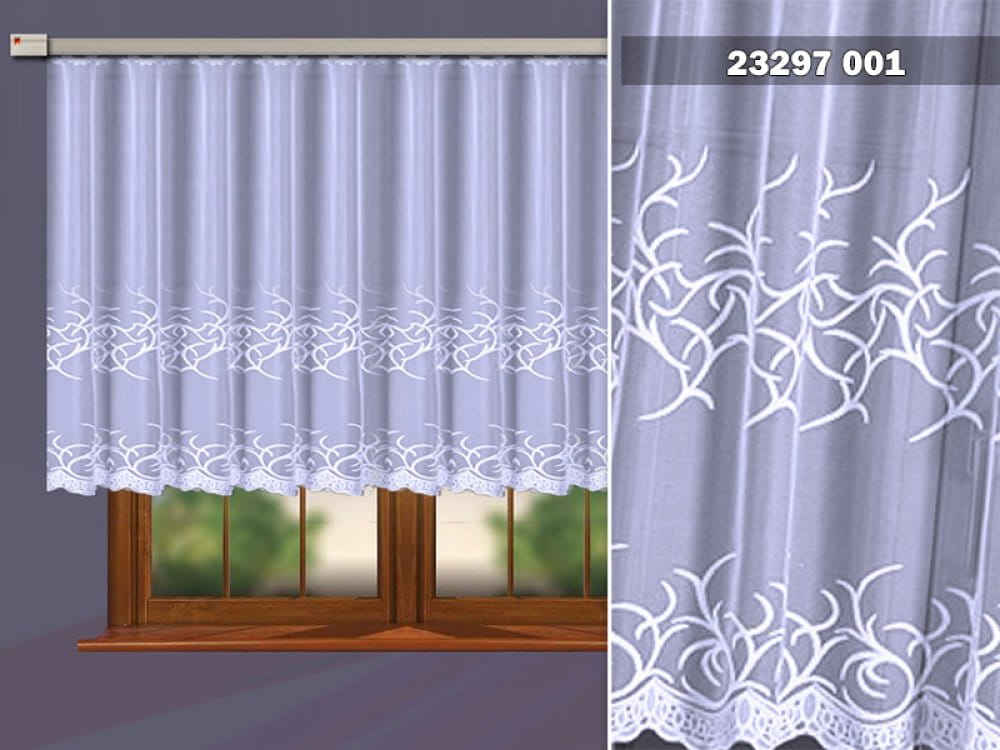 Firanka żakardowa wykonana z wysokiej jakości przędzy nabłyszczanej.