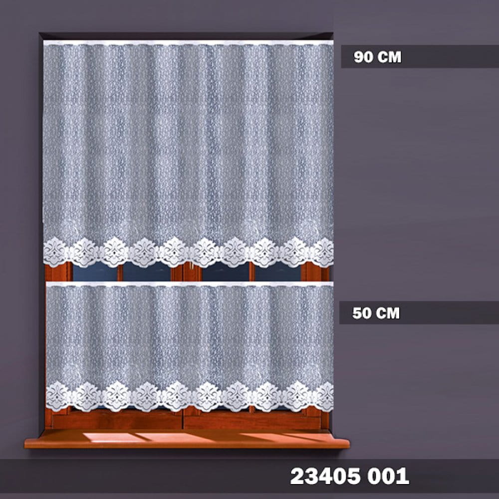 Firanka żakardowa wykonana z wysokiej jakości przędzy nabłyszczanej.