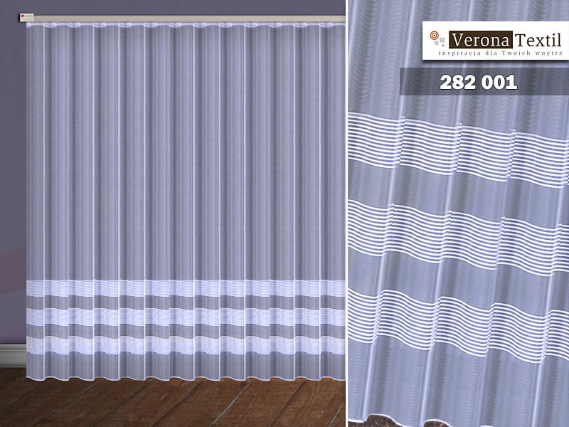 Firanka żakardowa wykonana z wysokiej jakości przędzy nabłyszczanej.