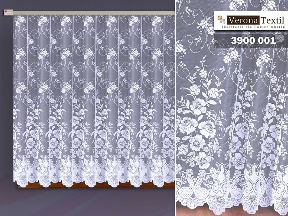 Firanka żakardowa wykonana z wysokiej jakości przędzy nabłyszczanej.
