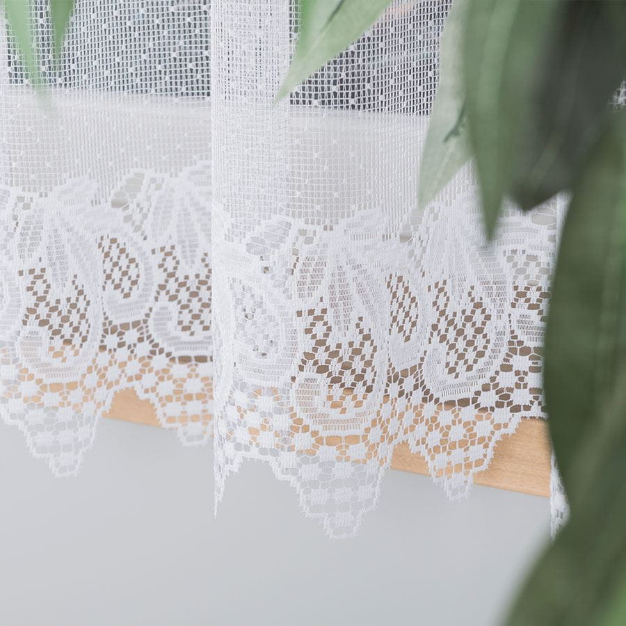 Firanka żakardowa wykonana z wysokiej jakości przędzy nabłyszczanej.