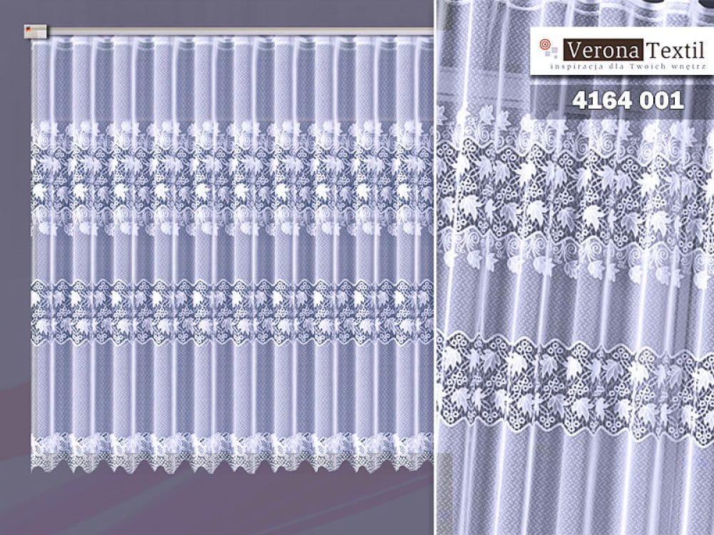 Firanka żakardowa wykonana z wysokiej jakości przędzy nabłyszczanej.