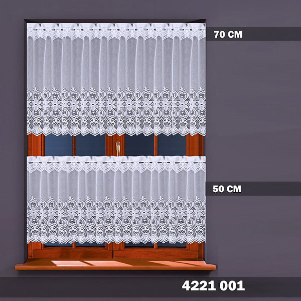 Firanka żakardowa wykonana z wysokiej jakości przędzy nabłyszczanej.