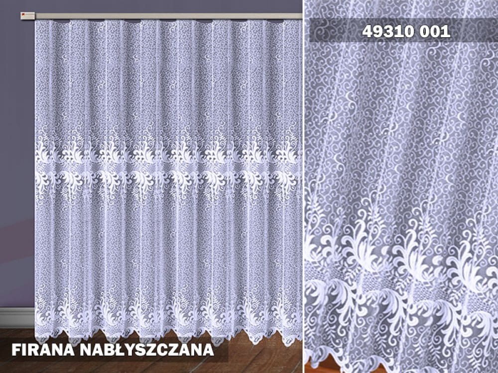 Firanka żakardowa wykonana z wysokiej jakości przędzy nabłyszczanej.