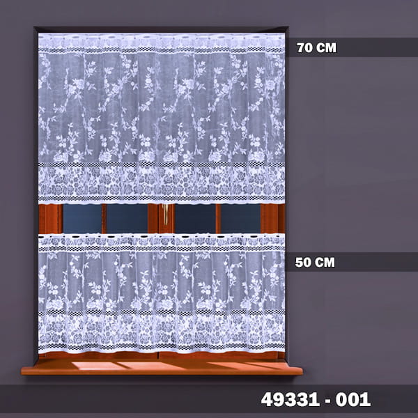 Firanka żakardowa wykonana z wysokiej jakości przędzy nabłyszczanej.