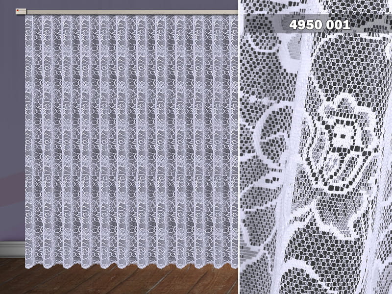 Firanka żakardowa wykonana z wysokiej jakości przędzy nabłyszczanej.
