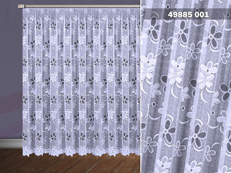 Firanka żakardowa wykonana z wysokiej jakości przędzy nabłyszczanej.