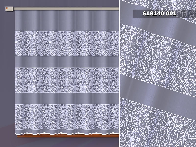 Firanka żakardowa wykonana z wysokiej jakości przędzy nabłyszczanej.