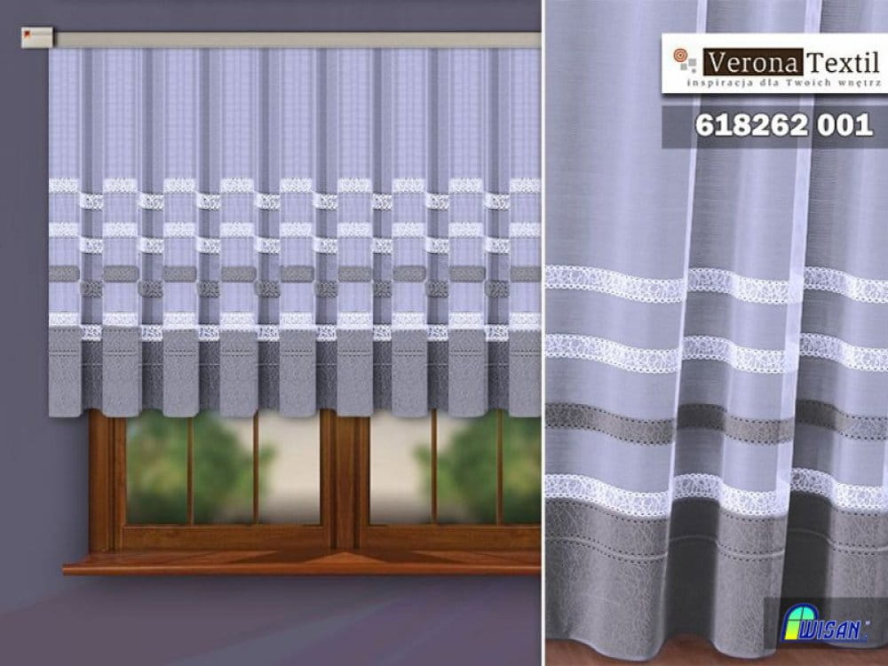 Firanka żakardowa wykonana z wysokiej jakości przędzy nabłyszczanej.
